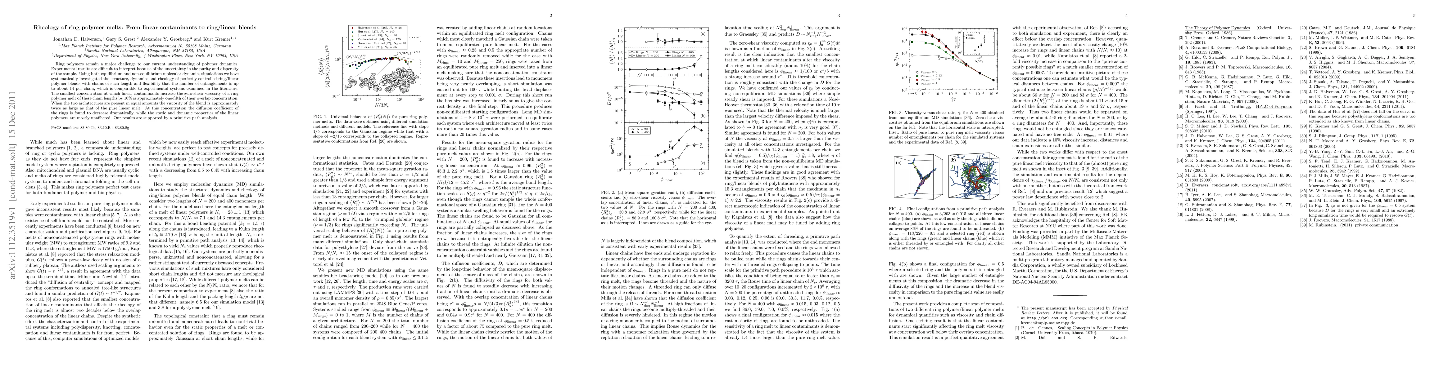 This paper investigates the rheology of ring polymer melts mixed with linear contaminants using molecular dynamics simulations. It reveals that linear contaminants significantly increase the zero-shear viscosity of ring polymer melts at concentrations near one-fifth of their overlap concentration.