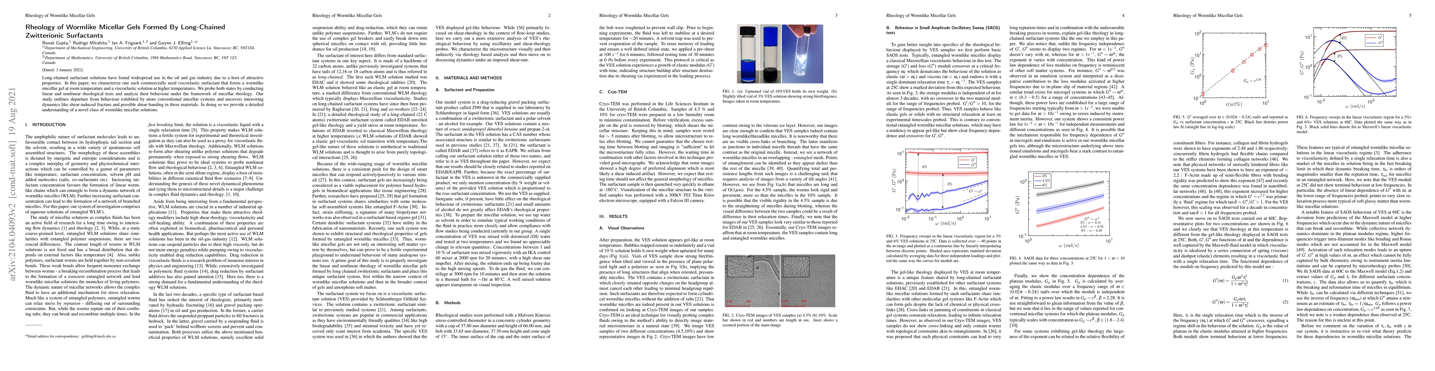 This paper characterizes the rheological behavior of a long-chained zwitterionic surfactant forming wormlike micellar gels at room temperature and viscoelastic solutions at higher temperatures. The study reveals unique dynamics such as shear-induced fracture and potential shear-banding, providing insights into a novel class of wormlike micellar solutions.