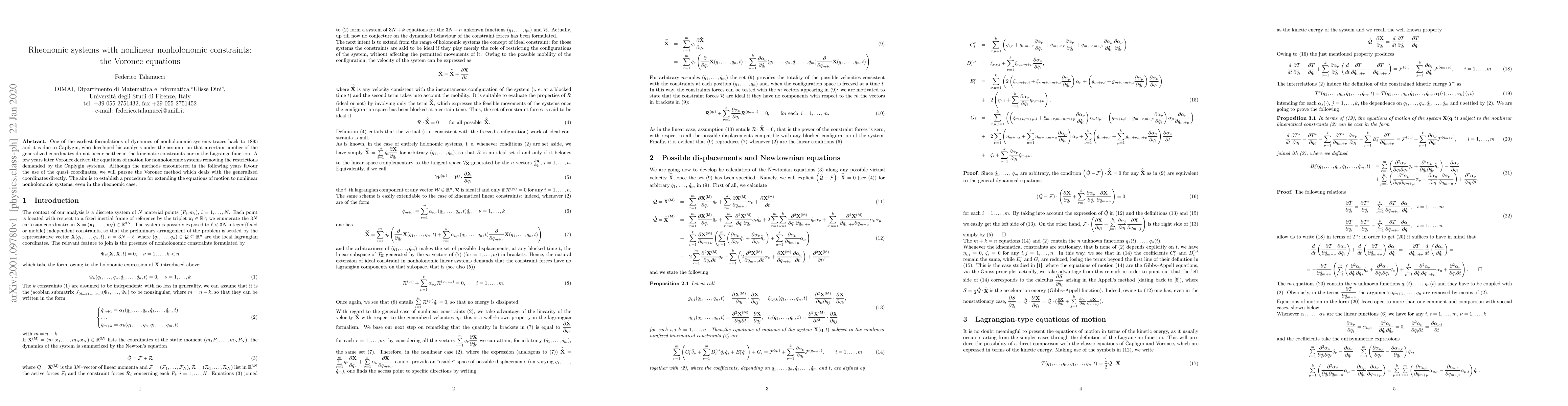 Researchers re-examine the Voronec equations to establish a method for extending nonholonomic system dynamics to nonlinear rheonomic systems, addressing early formulations from 1895.