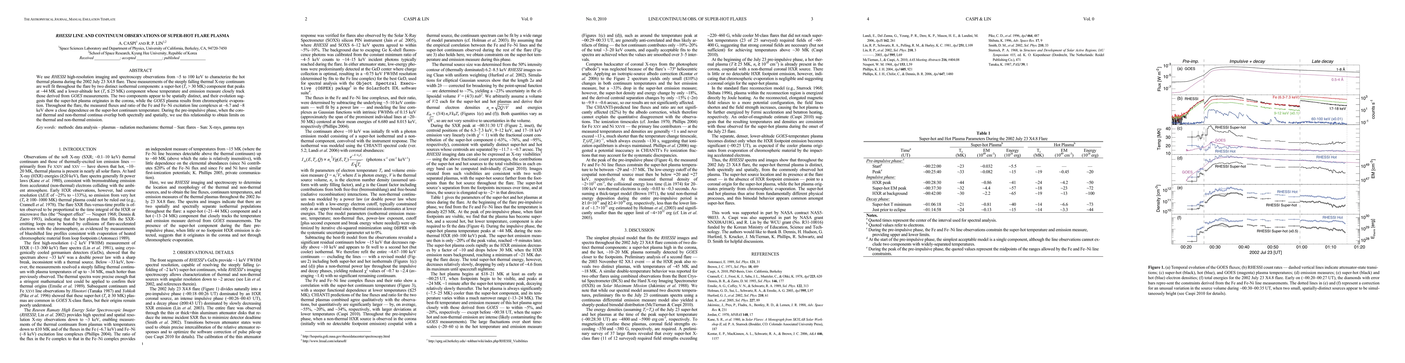 We use RHESSI high-resolution imaging and spectroscopy observations from ~5 to 100 keV to characterize the hot thermal plasma during the 2002 July 23 X4.8 flare. These measurements of the steeply falling thermal X-ray continuum are well fit throughout the flare by two distinct isothermal components: a super-hot (T > 30 MK) component that peaks at ~44 MK and a lower-altitude hot (T < 25 MK) component whose temperature and emission measure closely track those derived from GOES measurements. The two components appear to be spatially distinct, and their evolution suggests that the super-hot plasma originates in the corona, while the GOES plasma results from chromospheric evaporation. Throughout the flare, the measured fluxes and ratio of the Fe and Fe-Ni excitation line complexes at ~6.7 and ~8 keV show a close dependence on the super-hot continuum temperature. During the pre-impulsive phase, when the coronal thermal and non-thermal continua overlap both spectrally and spatially, we use this relationship to obtain limits on the thermal and non-thermal emission.