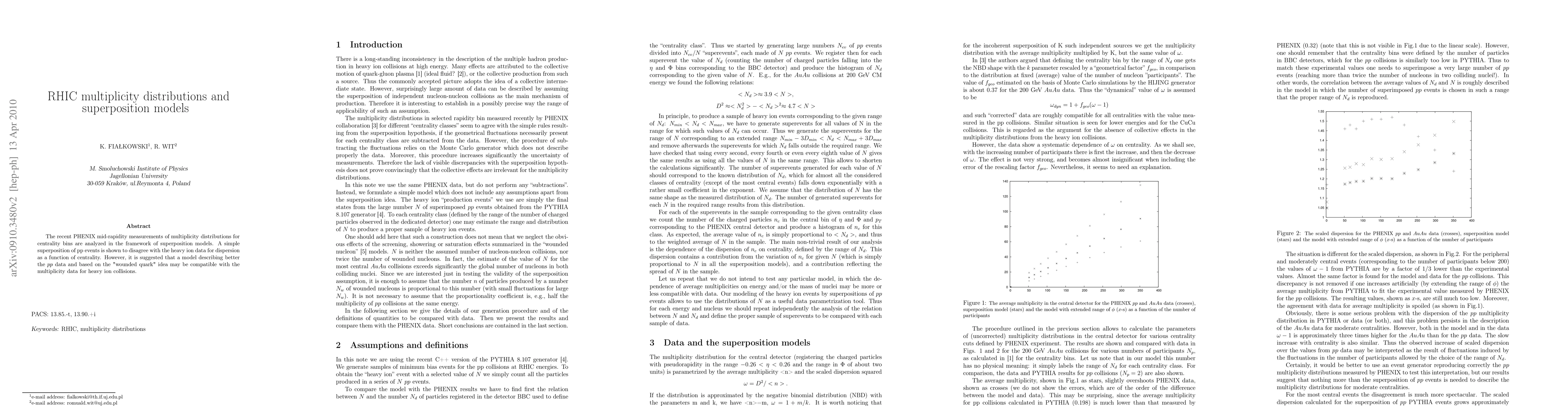 The paper presents a novel approach to analyzing RHIC multiplicity distributions using superposition models, incorporating the 'wounded quark' idea to better describe heavy ion collision data.