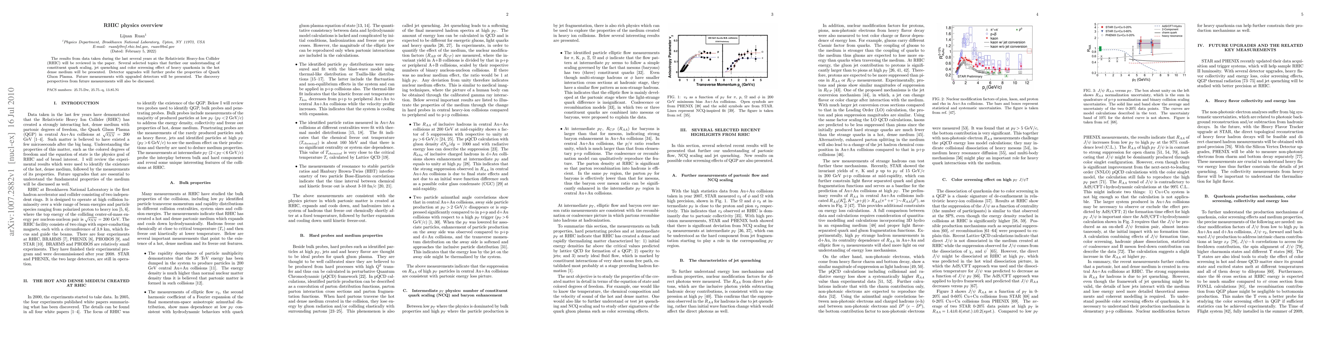 The results from data taken during the last several years at the Relativistic Heavy-Ion Collider (RHIC) will be reviewed in the paper. Several selected topics that further our understanding of constituent quark scaling, jet quenching and color screening effect of heavy quarkonia in the hot dense medium will be presented. Detector upgrades will further probe the properties of Quark Gluon Plasma. Future measurements with upgraded detectors will be presented. The discovery perspectives from future measurements will also be discussed.