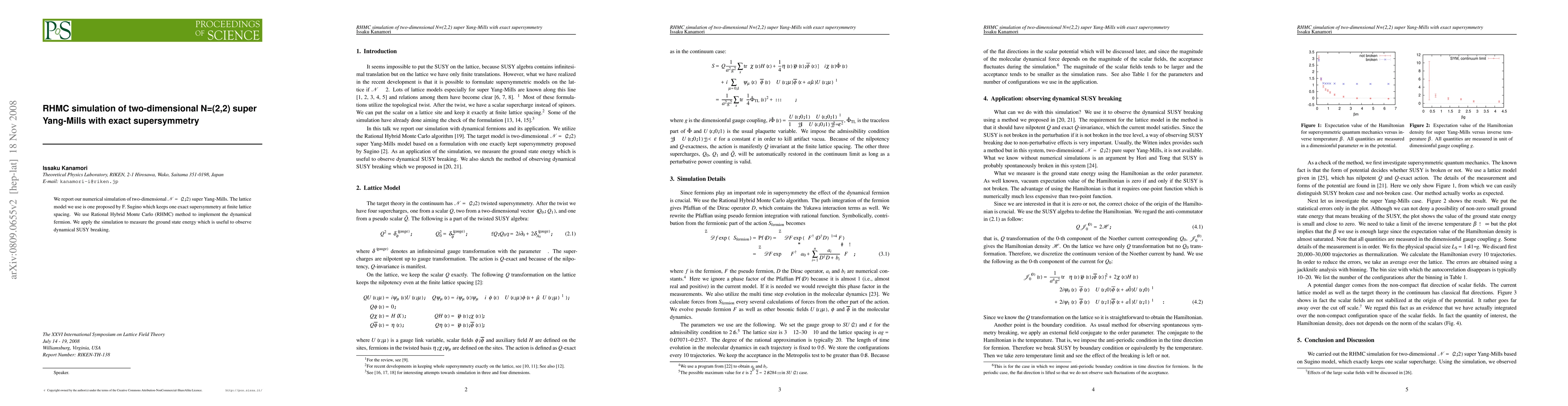 Two-dimensional N=(2,2) super Yang-Mills is numerically simulated using a lattice model preserving exact supersymmetry and Rational Hybrid Monte Carlo (RHMC) method. The study measures ground state energy to observe dynamical supersymmetry breaking.