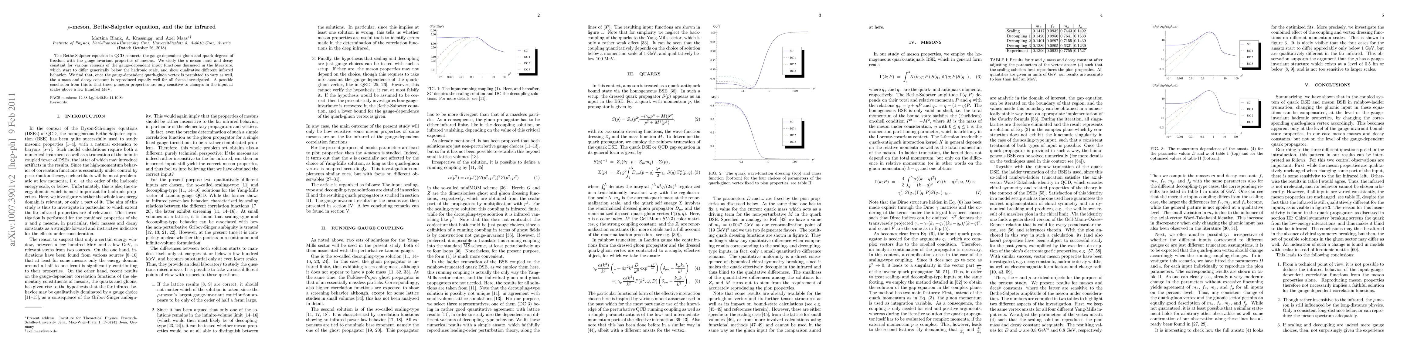 The Bethe-Salpeter equation in QCD connects the gauge-dependent gluon and quark degrees of freedom with the gauge-invariant properties of mesons. We study the rho meson mass and decay constant for various versions of the gauge-dependent input functions discussed in the literature, which start to differ generically below the hadronic scale, and show qualitative different infrared behavior. We find that, once the gauge-dependent quark-gluon vertex is permitted to vary as well, the rho mass and decay constant is reproduced equally well for all forms investigated. A possible conclusion from this is that these $\rho$-meson properties are only sensitive to changes in the input at scales above a few hundred MeV.