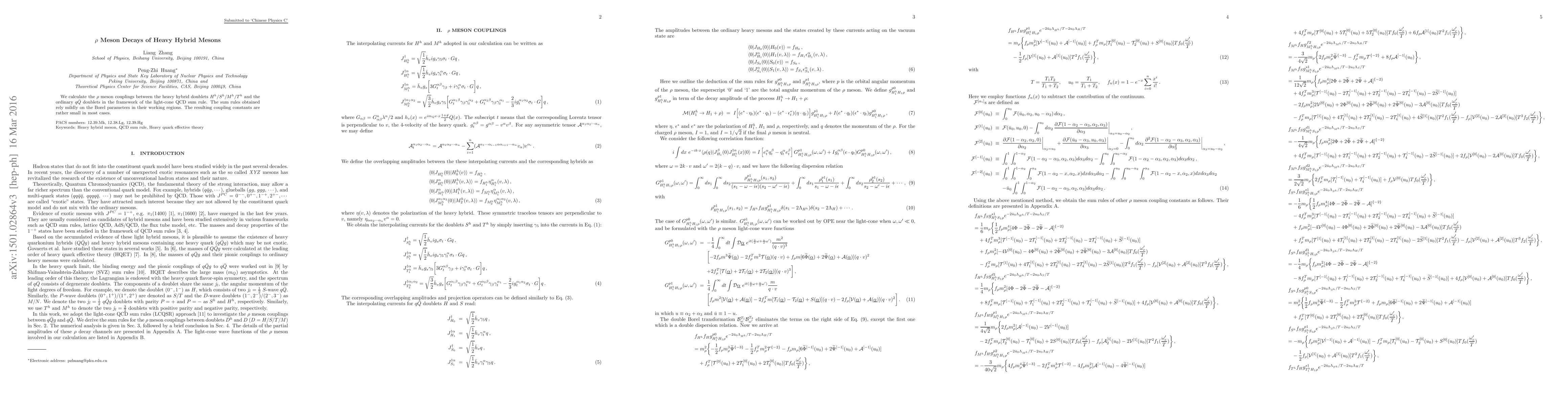 We calculate the $\rho$ meson couplings between the heavy hybrid doublets H^h/S^h/M^h/T^h and the ordinary q\bar{Q} doublets in the framework of the light-cone QCD sum rule. The sum rules obtained rely mildly on the Borel parameters in their working regions. The resulting coupling constants are rather small in most cases.