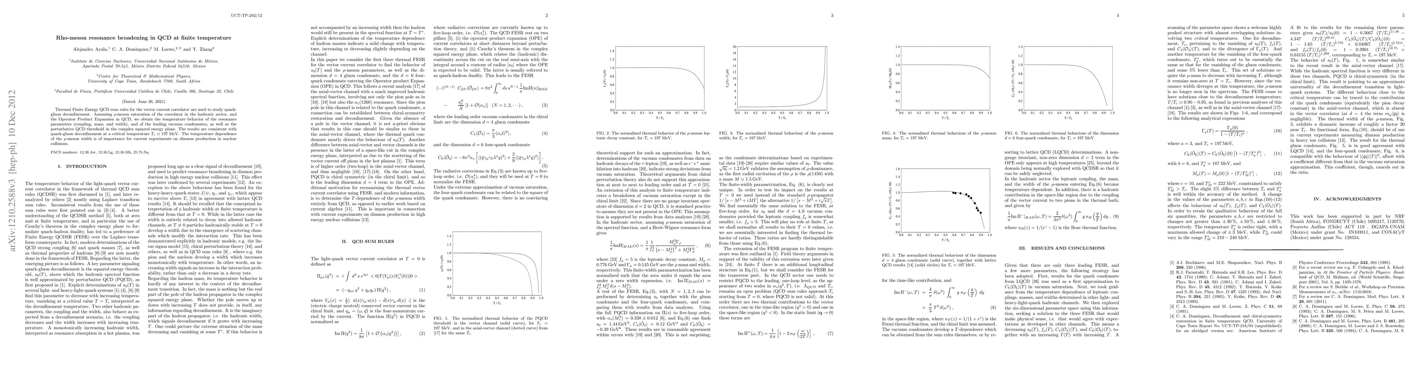 This paper investigates the thermal behavior of $\rho$-meson resonance parameters in QCD at finite temperature using thermal finite energy QCD sum rules. It finds that the $\rho$-meson width broadens with temperature, consistent with quark-gluon deconfinement at $T_c \simeq 197$ MeV, relevant for dimuon production experiments in nuclear collisions.