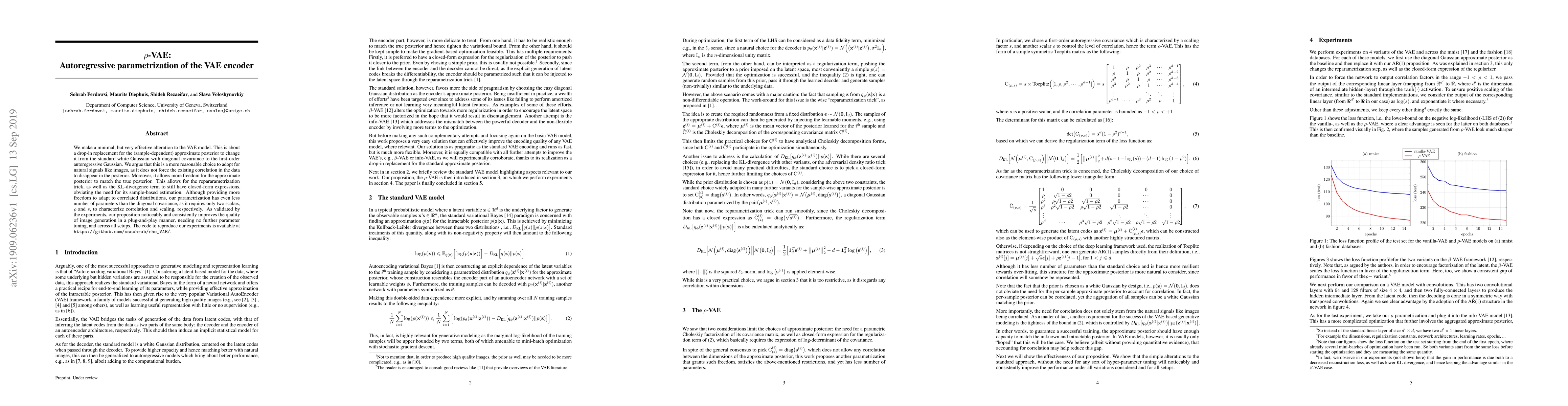 We make a minimal, but very effective alteration to the VAE model. This is about a drop-in replacement for the (sample-dependent) approximate posterior to change it from the standard white Gaussian with diagonal covariance to the first-order autoregressive Gaussian. We argue that this is a more reasonable choice to adopt for natural signals like images, as it does not force the existing correlation in the data to disappear in the posterior. Moreover, it allows more freedom for the approximate posterior to match the true posterior. This allows for the repararametrization trick, as well as the KL-divergence term to still have closed-form expressions, obviating the need for its sample-based estimation. Although providing more freedom to adapt to correlated distributions, our parametrization has even less number of parameters than the diagonal covariance, as it requires only two scalars, $\rho$ and $s$, to characterize correlation and scaling, respectively. As validated by the experiments, our proposition noticeably and consistently improves the quality of image generation in a plug-and-play manner, needing no further parameter tuning, and across all setups. The code to reproduce our experiments is available at \url{https://github.com/sssohrab/rho_VAE/}.