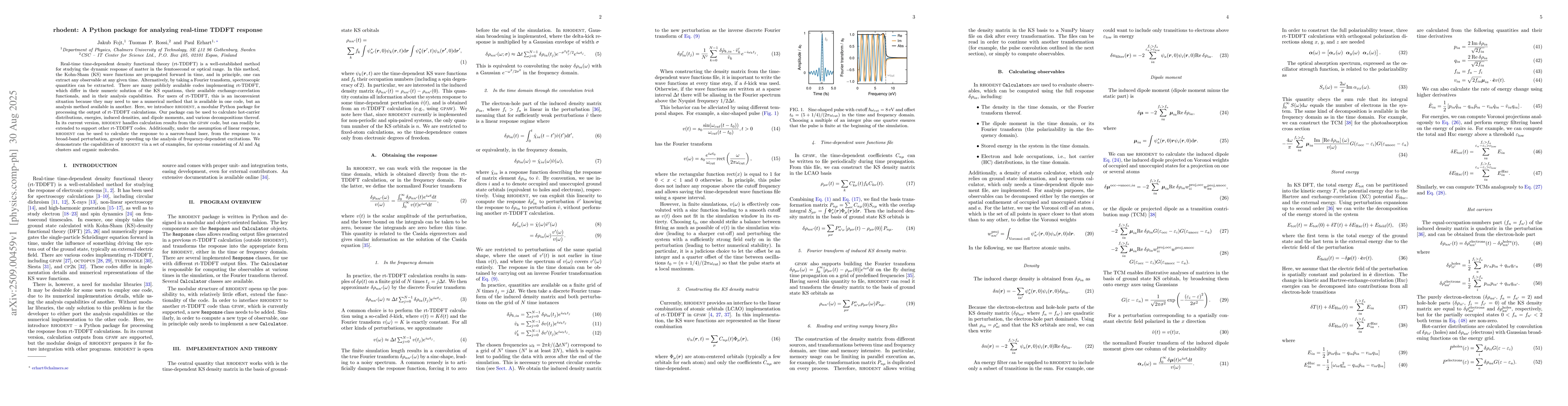 Real-time time-dependent density functional theory (rt-TDDFT) is a well-established method for studying the dynamic response of matter in the femtosecond or optical range. In this method, the Kohn-Sham (KS) wave functions are propagated forward in time, and in principle, one can extract any observable at any given time. Alternatively, by taking a Fourier transform, spectroscopic quantities can be extracted. There are many publicly available codes implementing rt-TDDFT, which differ in their numeric solution of the KS equations, their available exchange-correlation functionals, and in their analysis capabilities. For users of rt-TDDFT, this is an inconvenient situation because they may need to use a numerical method that is available in one code, but an analysis method available in another. Here, we introduce rhodent, a modular Python package for processing the output of rt-TDDFT calculations. Our package can be used to calculate hot-carrier distributions, energies, induced densities, and dipole moments, and various decompositions thereof. In its current version, rhodent handles calculation results from the gpaw code, but can readily be extended to support other rt-TDDFT codes. Additionally, under the assumption of linear response, rhodent can be used to calculate the response to a narrow-band laser, from the response to a broad-band perturbation, greatly speeding up the analysis of frequency-dependent excitations. We demonstrate the capabilities of rhodent via a set of examples, for systems consisting of Al and Ag clusters and organic molecules.