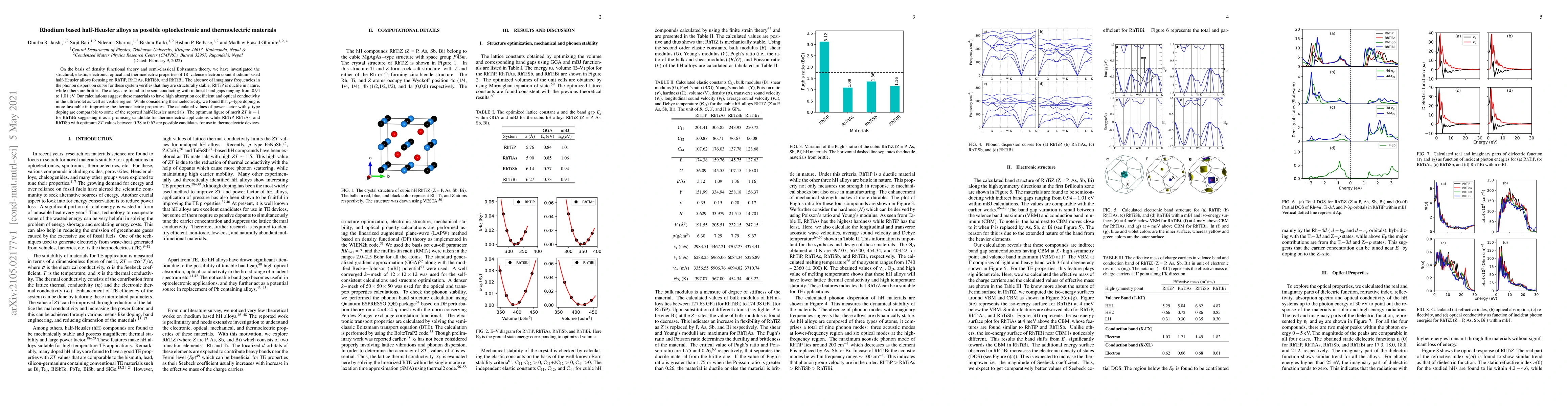 This study investigates the structural, electronic, optical, and thermoelectric properties of rhodium-based half-Heusler alloys using density functional theory. The materials show promising semiconducting behavior with high absorption and optical conductivity, and RhTiBi exhibits a figure of merit (\zt) of ~1, indicating potential for thermoelectric applications.