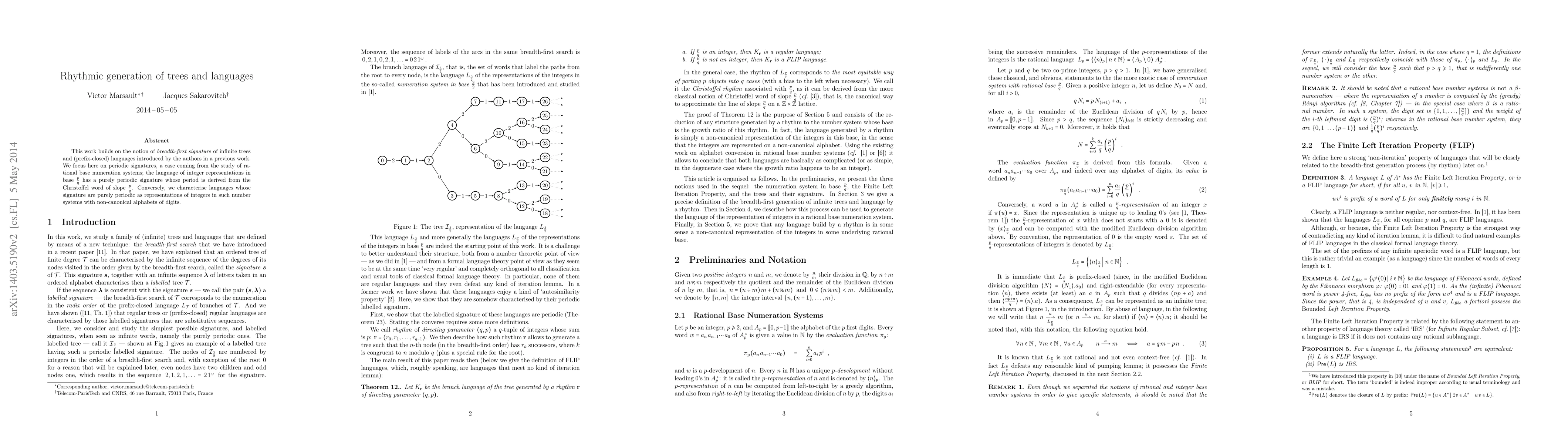 This work builds on the notion of breadth-first signature of infinite trees and (prefix-closed) languages introduced by the authors in a previous work. We focus here on periodic signatures, a case coming from the study of rational base numeration systems; the language of integer representations in base~$\frac{p}{q}$ has a purely periodic signature whose period is derived from the Christoffel word of slope~$\frac{p}{q}$. Conversely, we characterise languages whose signature are purely periodic as representations of integers in such number systems with non-canonical alphabets of digits.