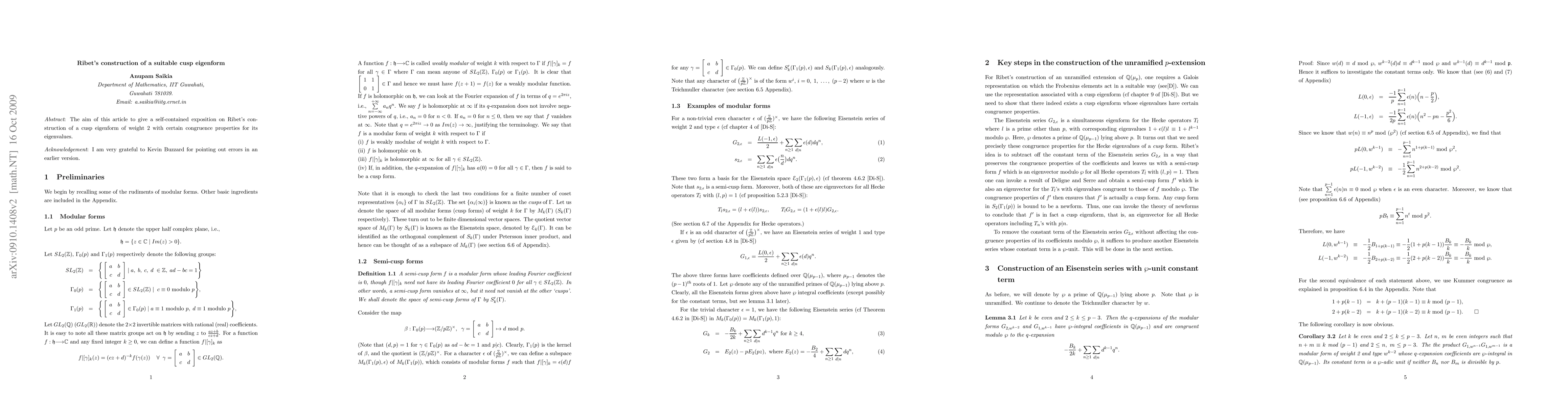 This article gives a self-contained exposition on Ribet's construction of a Hecke eigenform of weight 2 with certain congruence properties.