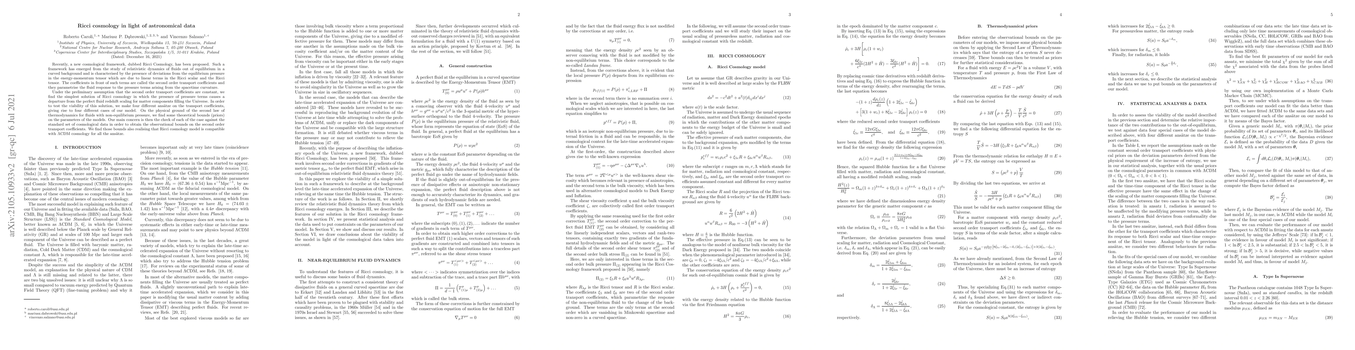 Recently, a new cosmological framework, dubbed Ricci Cosmology, has been proposed. Such a framework has emerged from the study of relativistic dynamics of fluids out of equilibrium in a curved background and is characterised by the presence of deviations from the equilibrium pressure in the energy-momentum tensor which are due to linear terms in the Ricci scalar and the Ricci tensor. The coefficients in front of such terms are called the second order transport coefficients and they parametrise the fluid response to the pressure terms arising from the spacetime curvature. Under the preliminary assumption that the second order transport coefficients are constant, we find the simplest solution of Ricci cosmology in which the presence of pressure terms causes a departure from the perfect fluid redshift scaling for matter components filling the Universe. In order to test the viability of this solution, we make four different ans\"{a}tze on the transport coefficients, giving rise to four different cases of our model. On the physical ground of the second law of thermodynamics for fluids with non-equilibrium pressure, we find some theoretical bounds (priors) on the parameters of the models. Our main concern is then the check of each of the case against the standard set of cosmological data in order to obtain the observational bounds on the second order transport coefficients. We find those bounds also realising that Ricci cosmology model is compatible with $\Lambda$CDM cosmology for all the ans\"{a}tze.