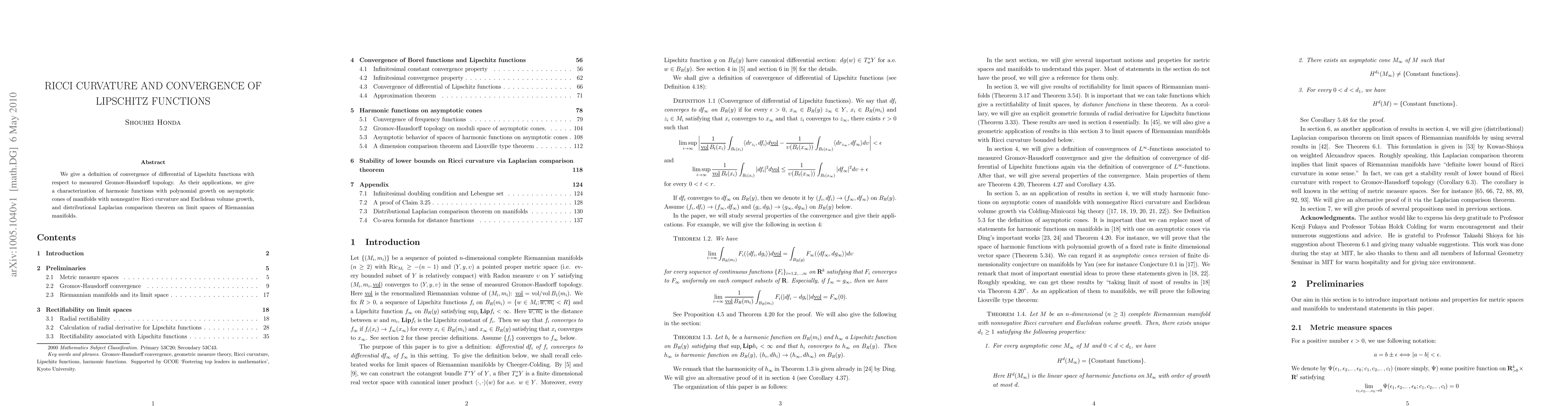 We give a definition of convergence of differential of Lipschitz functions with respect to measured Gromov-Hausdorff topology. As their applications, we give a characterization of harmonic functions with polynomial growth on asymptotic cones of manifolds with nonnegative Ricci curvature and Euclidean volume growth, and distributional Laplacian comparison theorem on limit spaces of Riemannian manifolds.