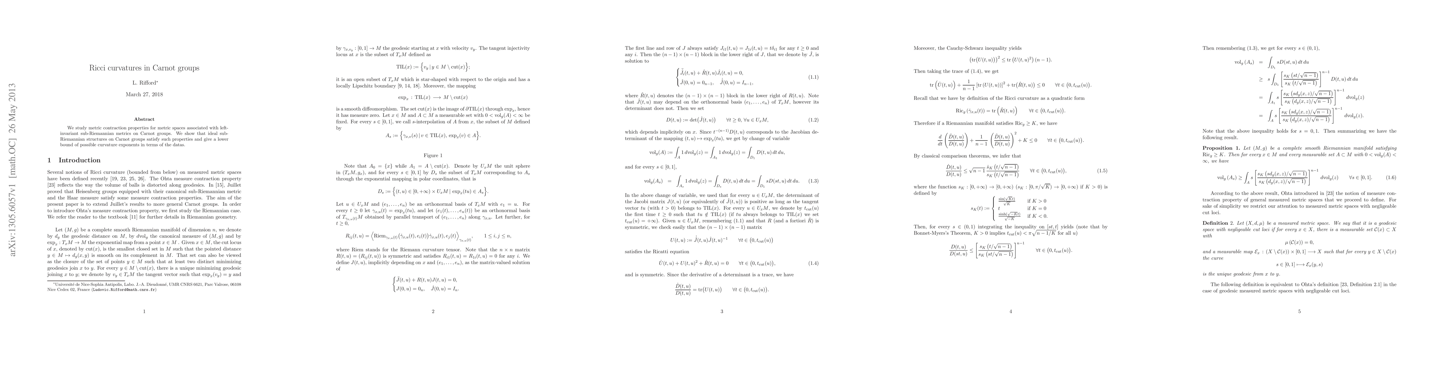 This paper investigates the Ricci curvature properties of metric spaces linked to left-invariant sub-Riemannian metrics on Carnot groups, demonstrating that ideal sub-Riemannian structures exhibit contraction properties and provides a lower bound for curvature exponents based on group data.