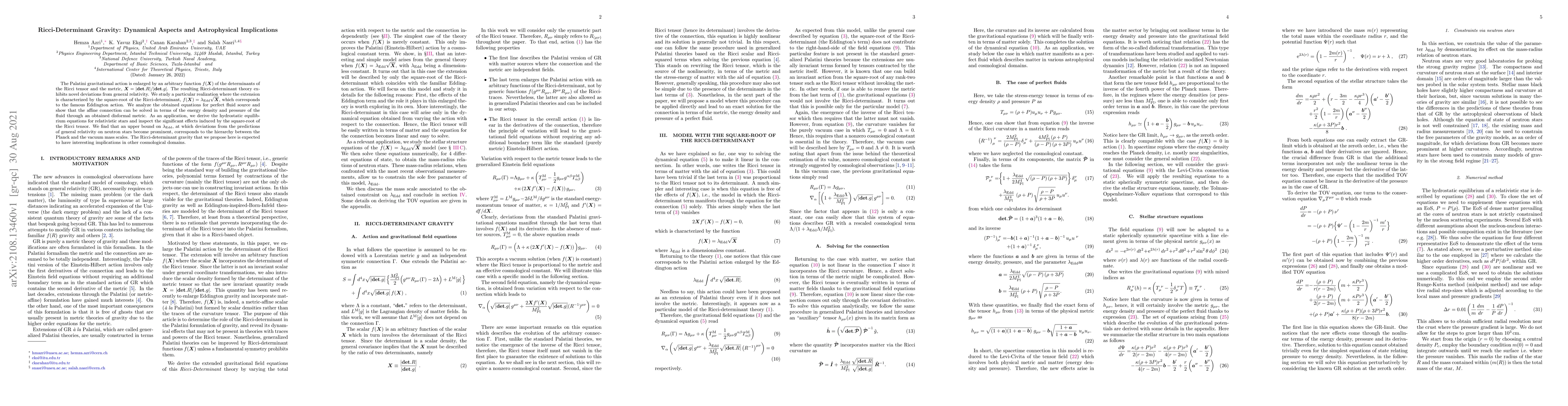 The Palatini gravitational action is enlarged by an arbitrary function $f(X)$ of the determinants of the Ricci tensor and the metric, $X=|\textbf{det}.R|/|\textbf{det}.g|$. The resulting Ricci-determinant theory exhibits novel deviations from general relativity. We study a particular realization where the extension is characterized by the square-root of the Ricci-determinant, $f(X)=\lambda_\text{Edd}\sqrt{X}$, which corresponds to the famous Eddington action. We analyze the obtained equations for a perfect fluid source and show that the affine connection can be solved in terms of the energy density and pressure of the fluid through an obtained disformal metric. As an application, we derive the hydrostatic equilibrium equations for relativistic stars and inspect the significant effects induced by the square-root of the Ricci tensor. We find that an upper bound on $\lambda_{\rm Edd}$, at which deviations from the predictions of general relativity on neutron stars become prominent, corresponds to the hierarchy between the Planck and the vacuum mass scales. The Ricci-determinant gravity that we propose here is expected to have interesting implications in other cosmological domains.