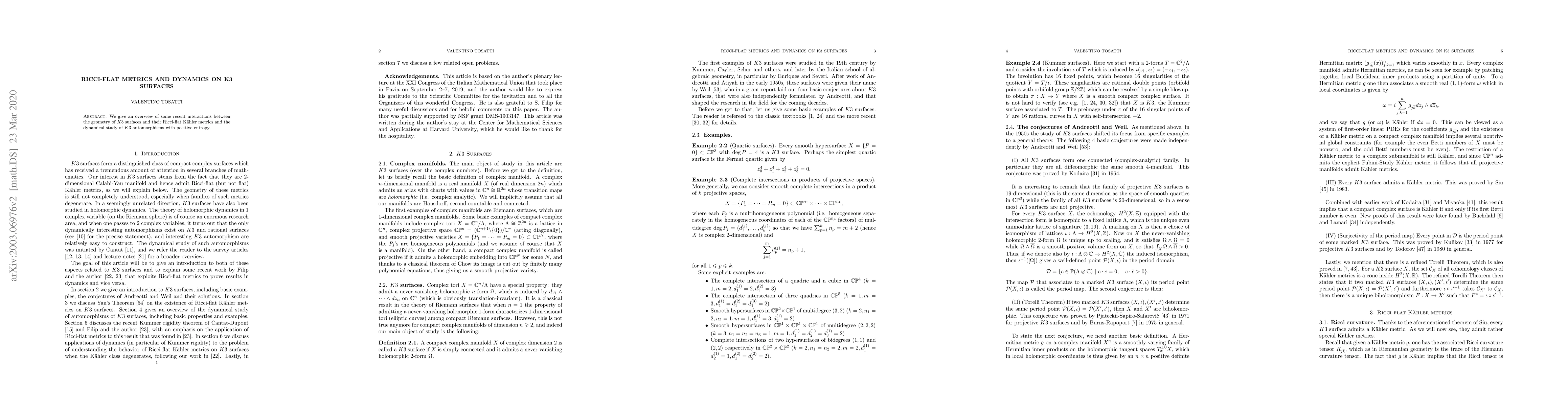 Summary: This paper explores connections between the geometry of K3 surfaces, specifically their Ricci-flat Kähler metrics, and the dynamics of K3 automorphisms exhibiting positive entropy, highlighting recent advances in this interdisciplinary area.