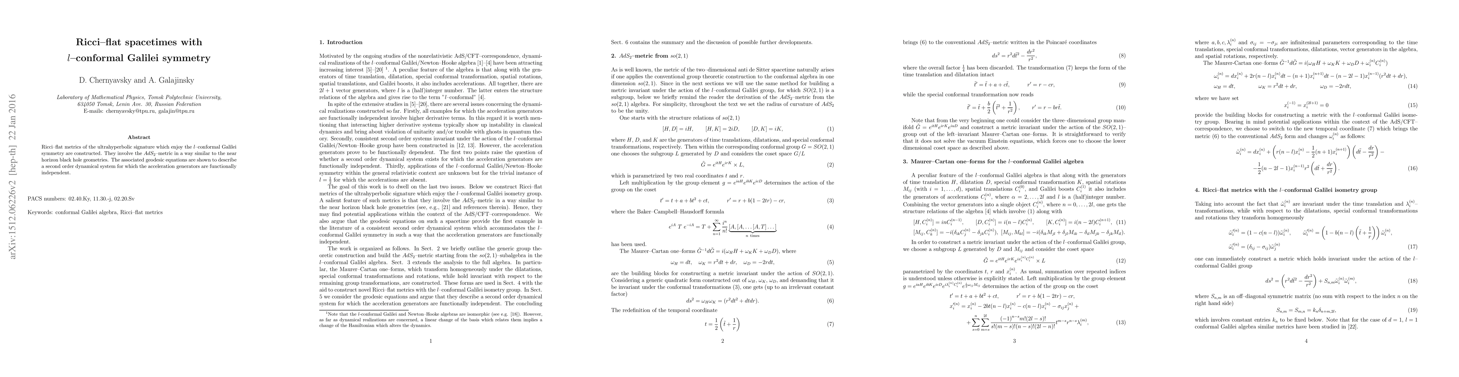 This paper constructs Ricci-flat metrics with l-conformal Galilei symmetry in ultrahyperbolic signature, incorporating AdS_2-metric elements akin to near-horizon black hole geometries. It demonstrates that the resulting geodesic equations represent a second-order dynamical system with independent acceleration generators.