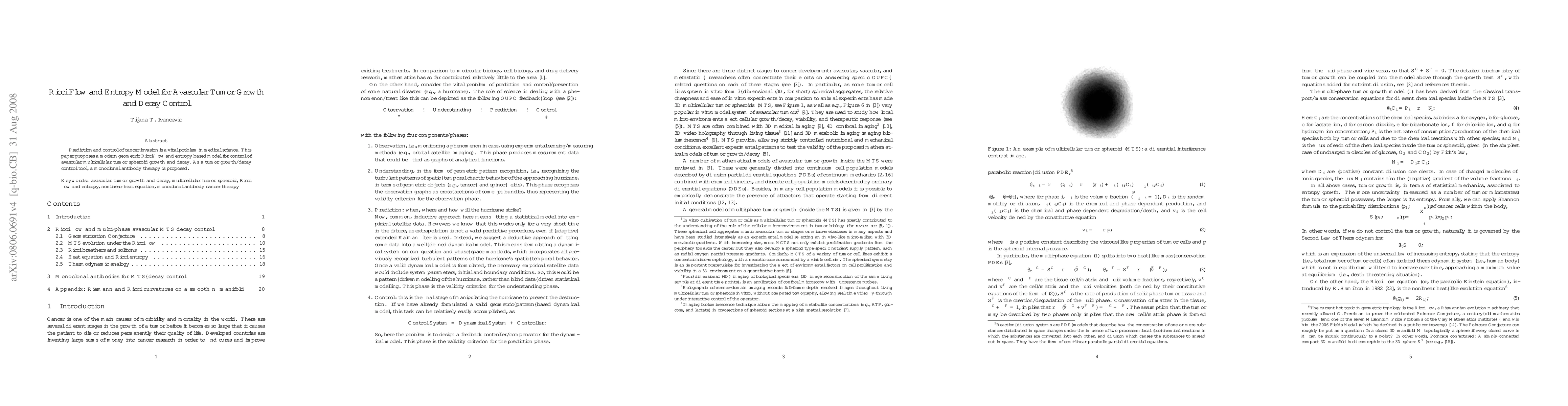This paper introduces a novel geometric Ricci-flow and entropy model to predict and control avascular tumor growth and decay, employing a monoclonal antibody therapy for effective treatment. The study aims to advance cancer invasion control through mathematical modeling.