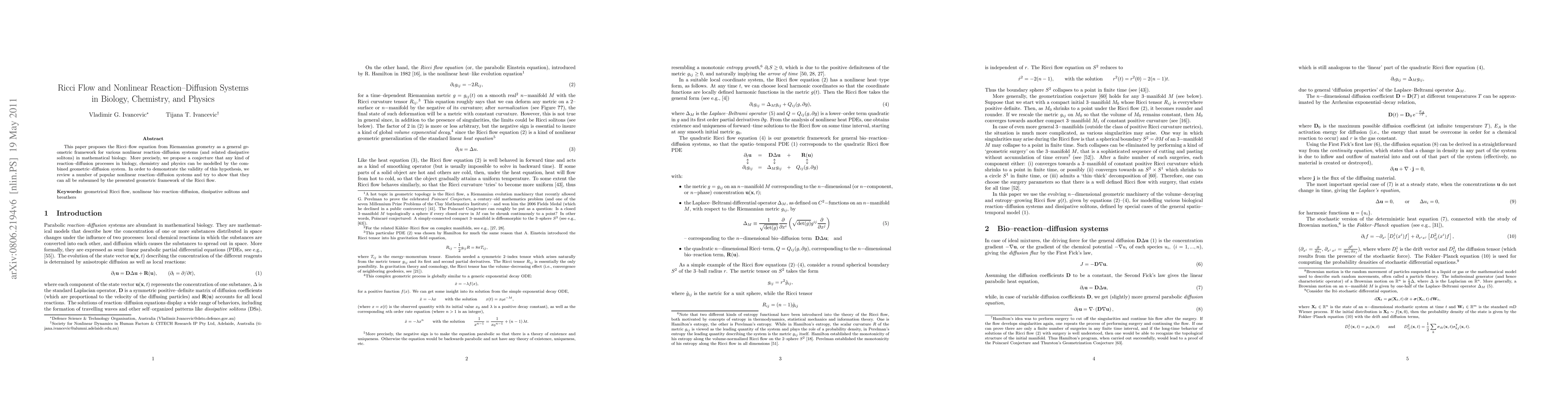 This paper introduces the Ricci-flow equation from Riemannian geometry as a unifying framework for modeling nonlinear reaction-diffusion systems across biology, chemistry, and physics. It conjectures that all such processes can be represented within this geometric-diffusion system, supported by a review of various established nonlinear reaction-diffusion models.