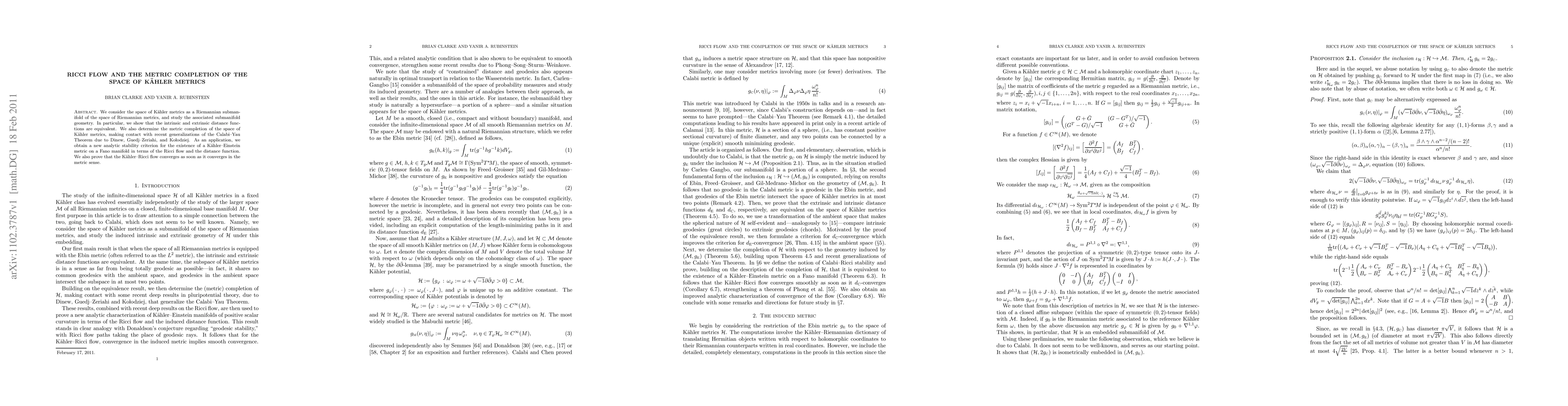 Researchers study the space of Kahler metrics and find that intrinsic and extrinsic distance functions are equivalent, leading to new insights on stability criteria and convergence of the Kahler-Ricci flow.