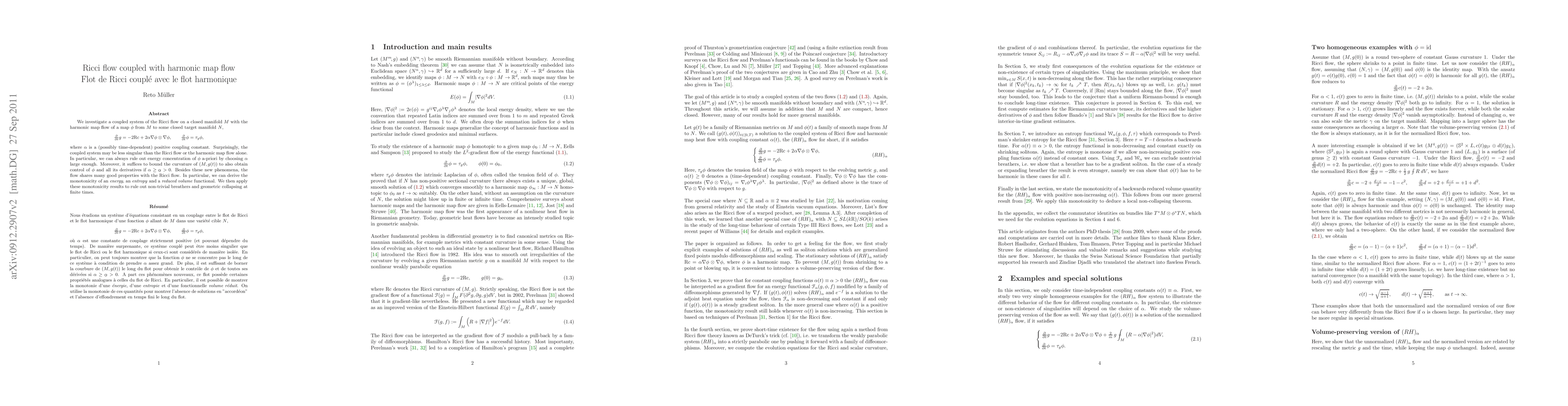 This paper explores a coupled geometric flow combining Ricci flow and harmonic map flow, showing that it can prevent energy concentration in the map and control curvature, unlike the individual flows. The system exhibits enhanced properties, including monotonicity of entropy and reduced volume functionals, which help rule out non-trivial geometric collapsing.