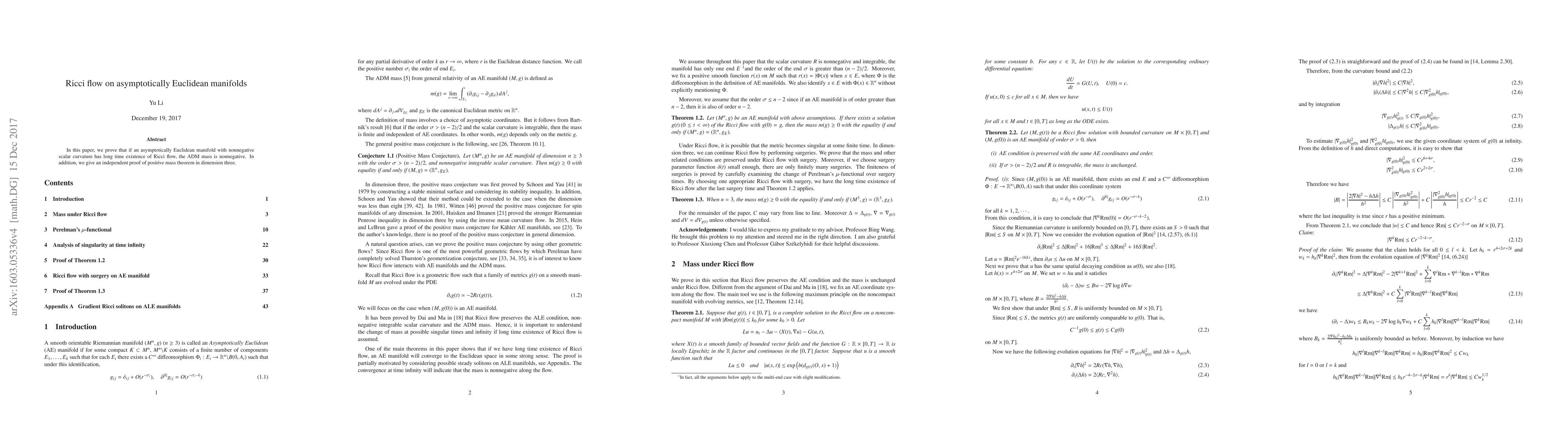 This paper proves that asymptotically Euclidean manifolds with non-negative Ricci curvature maintain nonnegative mass under Ricci flow, and provides an independent proof of the positive mass theorem in three dimensions.