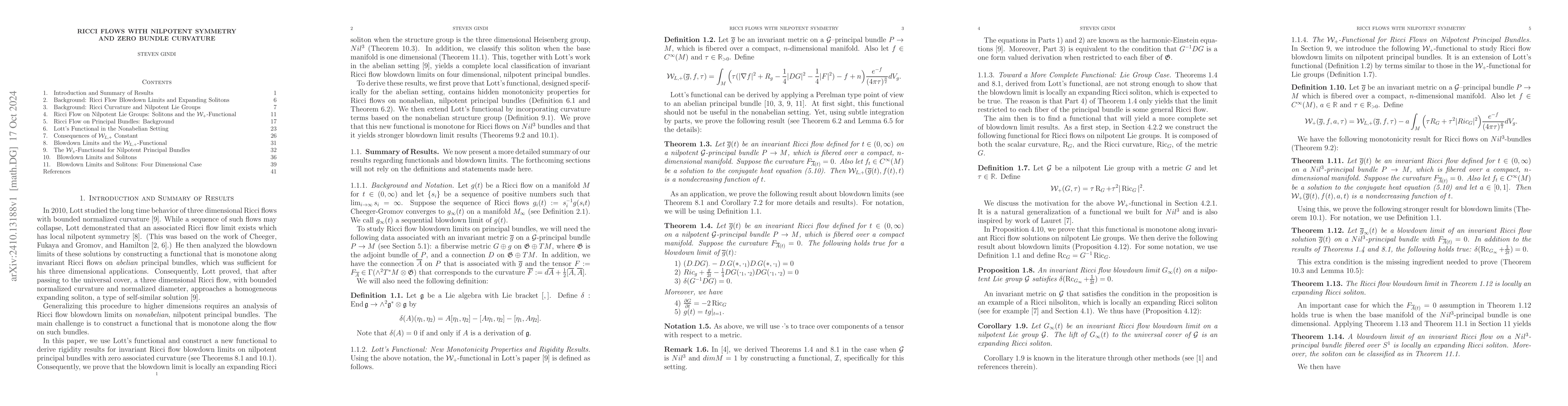 This paper develops new functionals to derive rigidity results for Ricci flow on nilpotent principal bundles, proving that the blowdown limit is an expanding Ricci soliton when the structure group is the three-dimensional Heisenberg group, and classifies this soliton when the base manifold is one-dimensional, completing the local classification for four-dimensional nilpotent bundles.