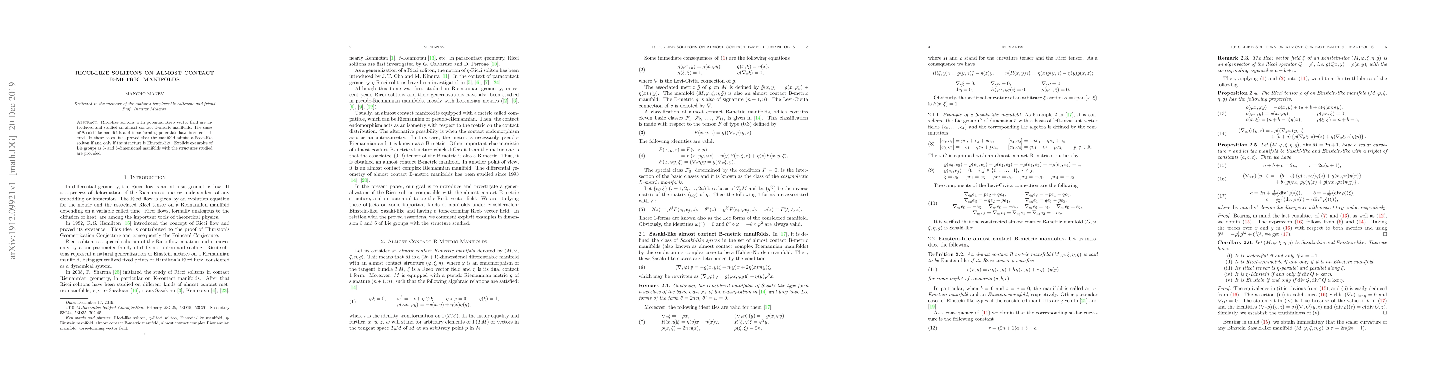 The paper introduces Ricci-like solitons with potential Reeb vector fields on almost contact B-metric manifolds, proving that such manifolds admit Ricci-like solitons if and only if they are Einstein-like, with explicit examples from Lie groups.