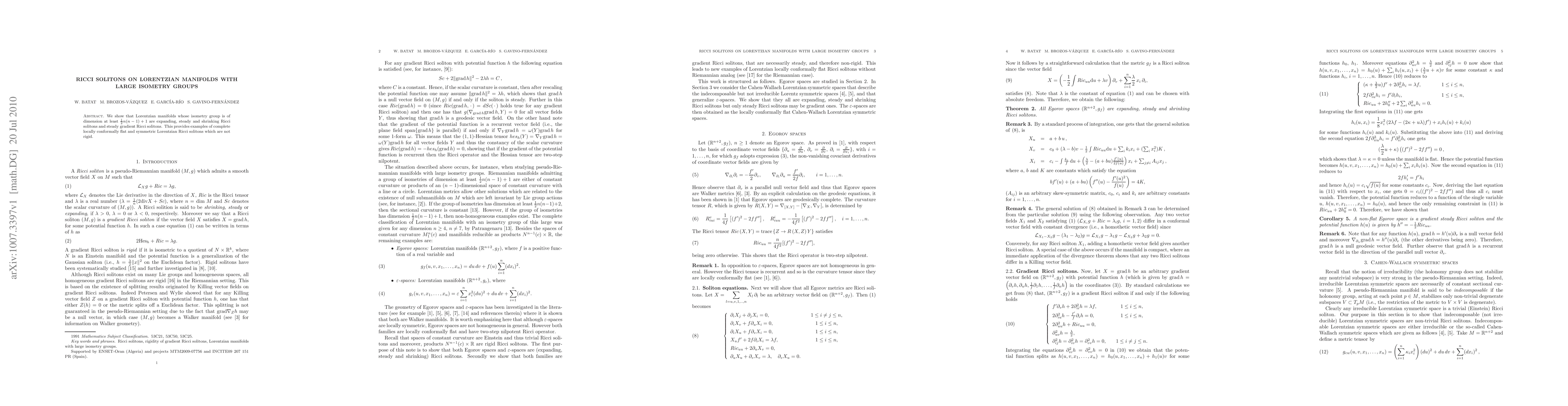 Summary: The paper demonstrates that Lorentzian manifolds with sufficiently large isometry groups exhibit various types of Ricci solitons, including expanding, steady, and shrinking forms, and highlights that these solitons are not rigid and can be locally conformally flat and symmetric.