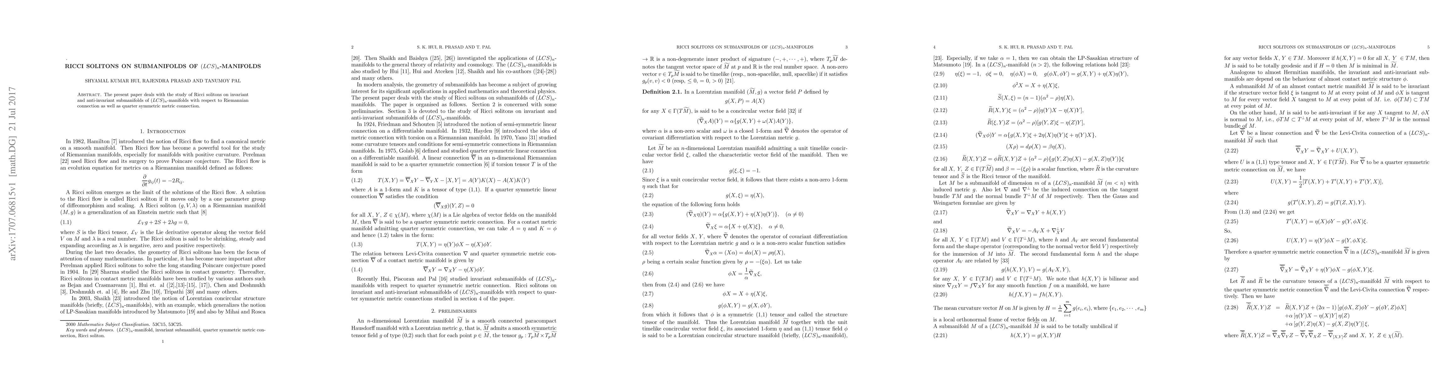 Summary: This paper investigates Ricci solitons on invariant and anti-invariant submanifolds within $(LCS)_n$-manifolds, considering both Riemannian and quarter symmetric metric connections. The study aims to understand the geometric properties of these submanifolds under different connection frameworks.