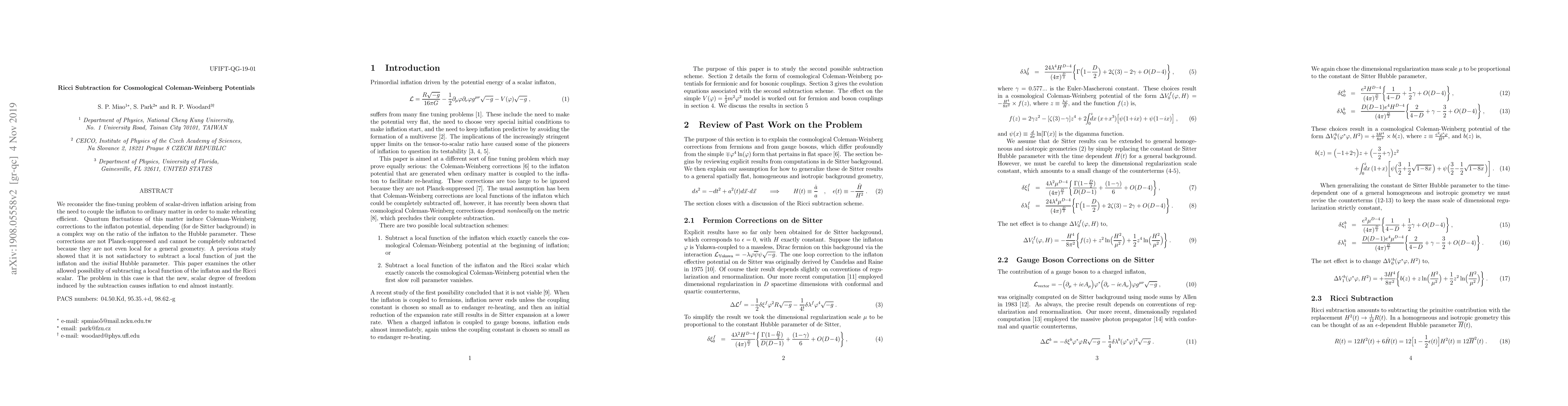 We reconsider the fine-tuning problem of scalar-driven inflation arising from the need to couple the inflaton to ordinary matter in order to make reheating efficient. Quantum fluctuations of this matter induce Coleman-Weinberg corrections to the inflaton potential, depending (for de Sitter background) in a complex way on the ratio of the inflaton to the Hubble parameter. These corrections are not Planck-suppressed and cannot be completely subtracted because they are not even local for a general geometry. A previous study showed that it is not satisfactory to subtract a local function of just the inflaton and the {\it initial} Hubble parameter. This paper examines the other allowed possibility of subtracting a local function of the inflaton and the Ricci scalar. The problem in this case is that the new, scalar degree of freedom induced by the subtraction causes inflation to end almost instantly.
