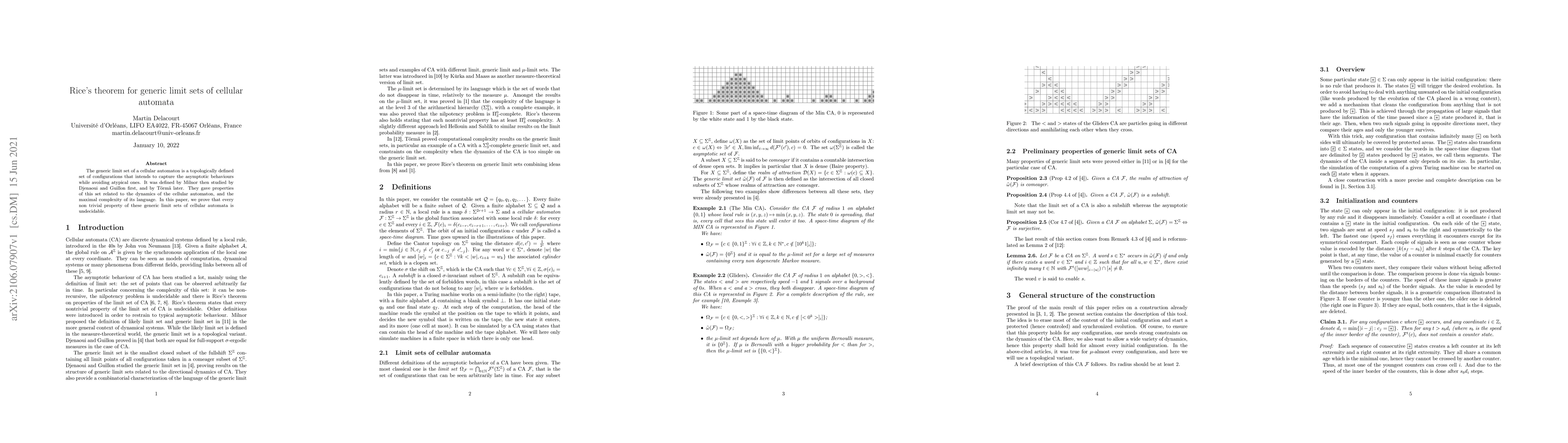 This paper proves that any non-trivial property of the generic limit sets of cellular automata is undecidable, extending Rice's theorem to these sets and highlighting the inherent complexity of their asymptotic behaviors.