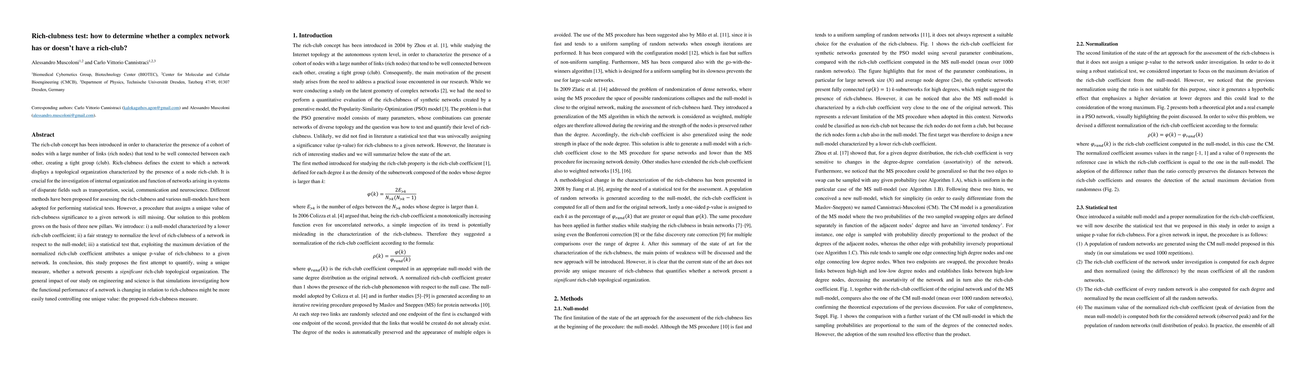 The rich-club concept has been introduced in order to characterize the presence of a cohort of nodes with a large number of links (rich nodes) that tend to be well connected between each other, creating a tight group (club). Rich-clubness defines the extent to which a network displays a topological organization characterized by the presence of a node rich-club. It is crucial for the investigation of internal organization and function of networks arising in systems of disparate fields such as transportation, social, communication and neuroscience. Different methods have been proposed for assessing the rich-clubness and various null-models have been adopted for performing statistical tests. However, a procedure that assigns a unique value of rich-clubness significance to a given network is still missing. Our solution to this problem grows on the basis of three new pillars. We introduce: i) a null-model characterized by a lower rich-club coefficient; ii) a fair strategy to normalize the level of rich-clubness of a network in respect to the null-model; iii) a statistical test that, exploiting the maximum deviation of the normalized rich-club coefficient attributes a unique p-value of rich-clubness to a given network. In conclusion, this study proposes the first attempt to quantify, using a unique measure, whether a network presents a significant rich-club topological organization. The general impact of our study on engineering and science is that simulations investigating how the functional performance of a network is changing in relation to rich-clubness might be more easily tuned controlling one unique value: the proposed rich-clubness measure.