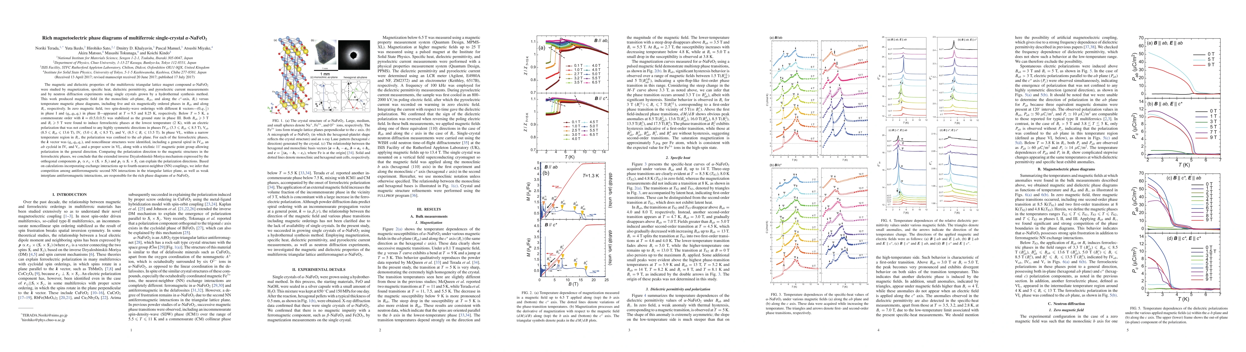 The magnetic and dielectric properties of the multiferroic triangular lattice magnet compound alpha-NaFeO2 were studied by magnetization, specific heat, dielectric permittivity, and pyroelectric current measurements and by neutron diffraction experiments using single crystals grown by a hydrothermal synthesis method. This work produced magnetic field (in the monoclinic ab-plane, B_ab, and along the c*-axis, B_c) versus temperature magnetic phase diagrams, including five and six magnetically ordered phases in B_ab and along B_c, respectively. Comparing the polarization direction to the magnetic structures in the different ferroelectric phases, we conclude that the extended inverse Dzyaloshinskii-Moriya mechanism expressed by the orthogonal components p1 ~ rij x (Si x Sj ) and p2 ~ Si x Sj can explain the polarization directions. Based on calculations incorporating exchange interactions up to fourth-nearest-neighbor (NN) couplings, we infer that competition among antiferromagnetic second NN interactions in the triangular lattice plane, as well as weak interplane antiferromagnetic interactions, are responsible for the rich phase diagrams of alpha-NaFeO2.