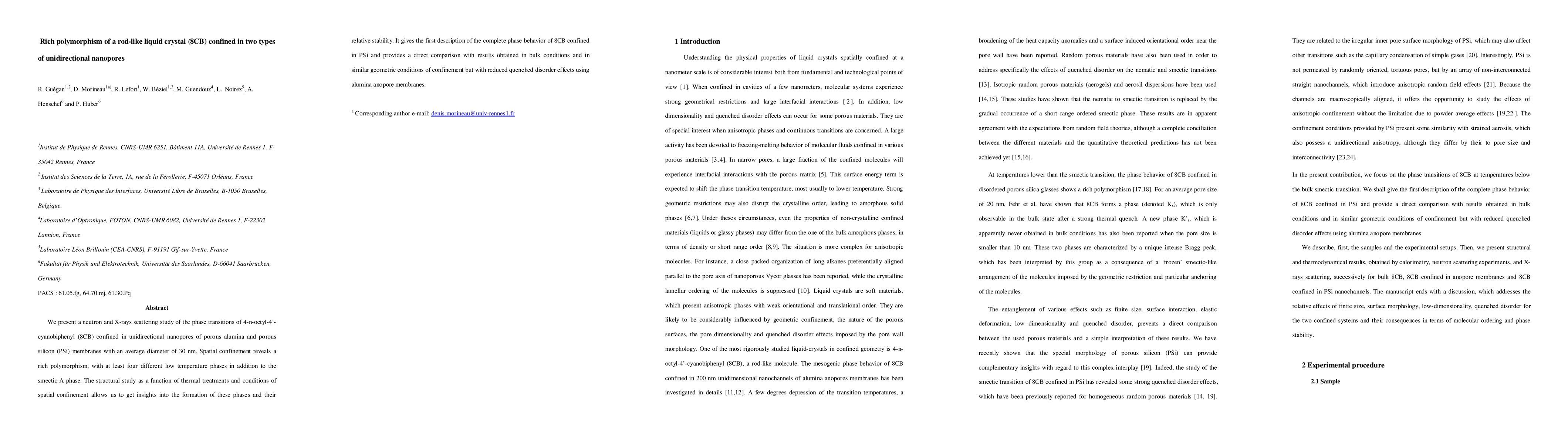 We present a neutron and X-rays scattering study of the phase transitions of 4-n-octyl-4'-cyanobiphenyl (8CB) confined in unidirectional nanopores of porous alumina and porous silicon (PSi) membranes with an average diameter of 30 nm. Spatial confinement reveals a rich polymorphism, with at least four different low temperature phases in addition to the smectic A phase. The structural study as a function of thermal treatments and conditions of spatial confinement allows us to get insights into the formation of these phases and their relative stability. It gives the first description of the complete phase behavior of 8CB confined in PSi and provides a direct comparison with results obtained in bulk conditions and in similar geometric conditions of confinement but with reduced quenched disorder effects using alumina anopore membranes