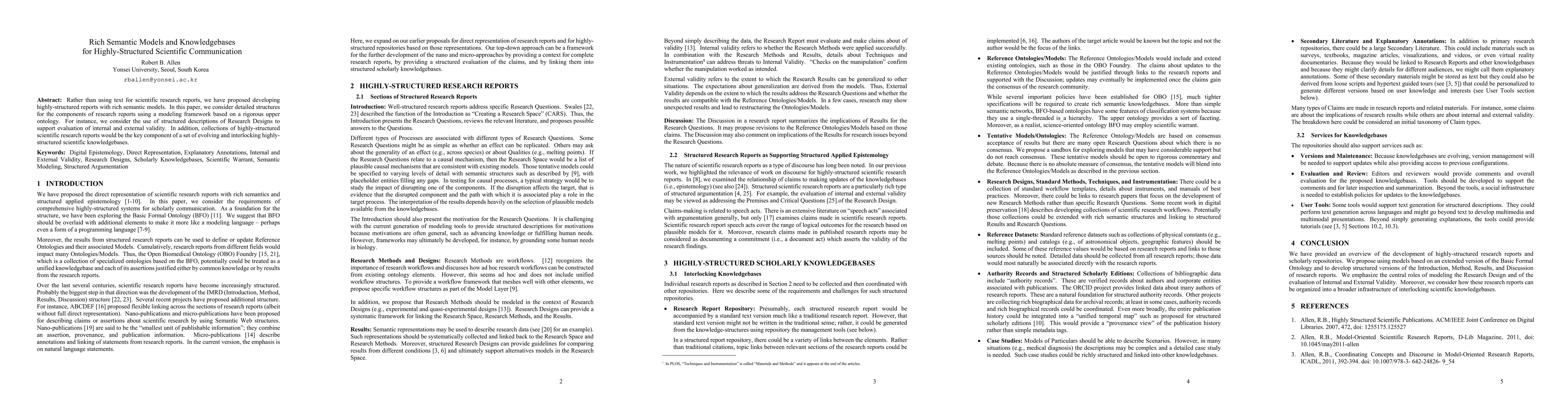 The paper introduces a detailed modeling framework for highly-structured scientific research reports, incorporating semantic structures and linking them to scholarly knowledgebases.