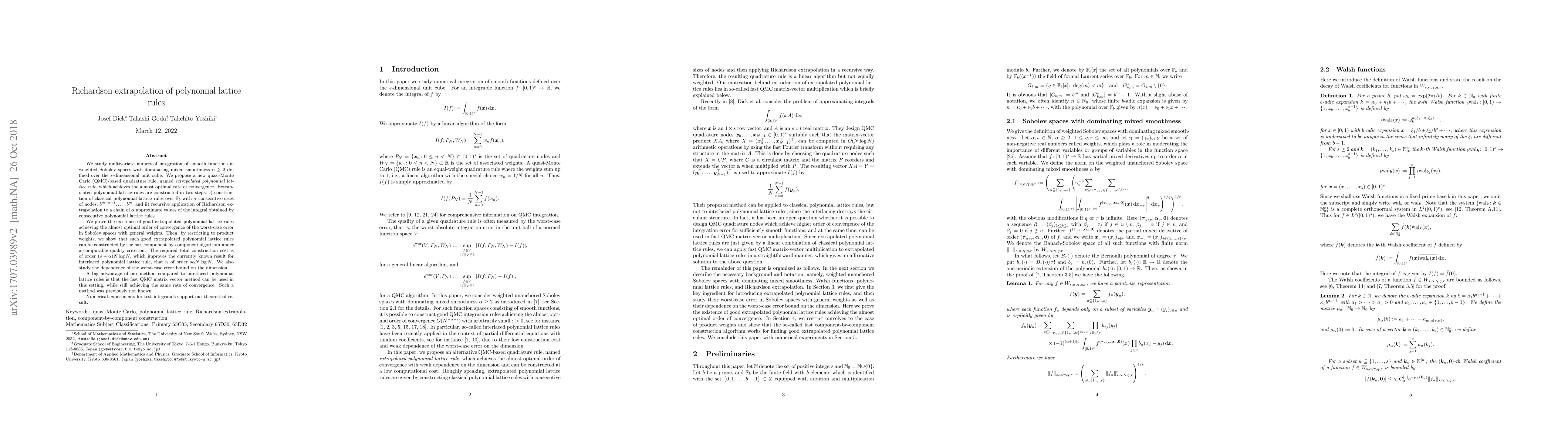 This paper proposes a new quasi-Monte Carlo-based quadrature rule called the extrapolated polynomial lattice rule for efficient multivariate numerical integration of smooth functions. It achieves near-optimal convergence rates through Richardson extrapolation and demonstrates lower construction costs compared to interlaced polynomial lattice rules.