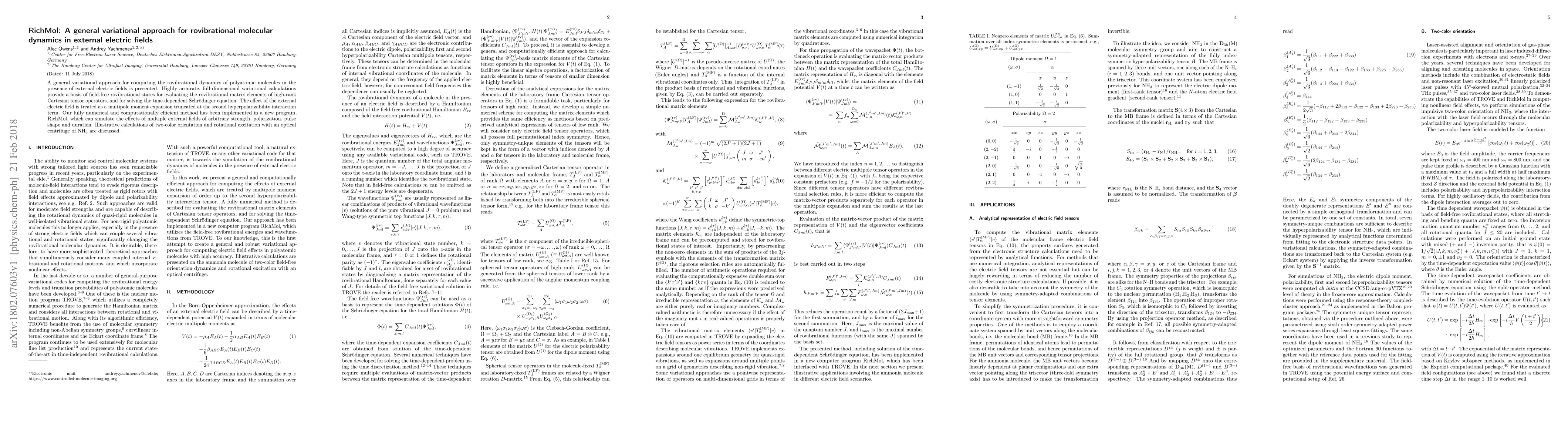 RichMol presents a variational approach for rovibrational dynamics in external electric fields, enabling accurate full-dimensional calculations and simulating effects of multiple field types. The method efficiently computes rovibrational matrix elements and solves the time-dependent Schrödinger equation using a multipole expansion.