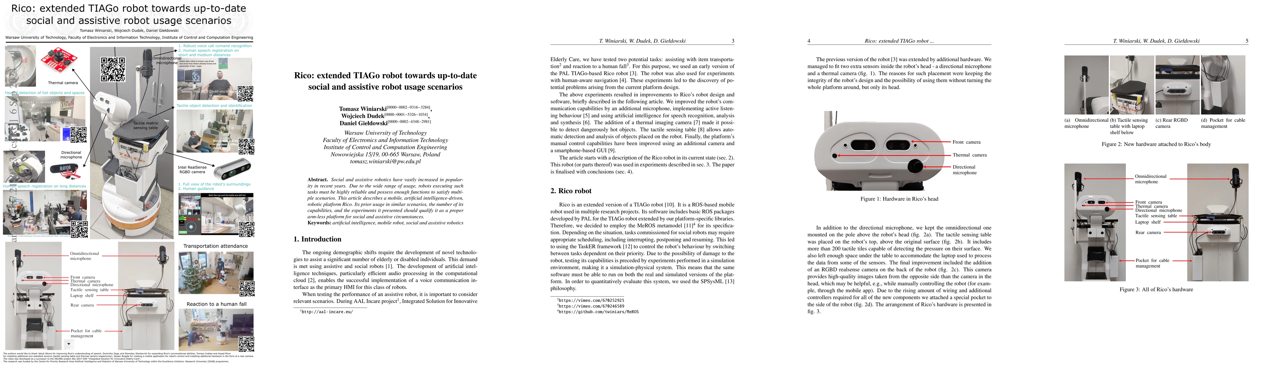 Summary: This paper introduces Rico, an advanced TIAGo robot equipped with AI, designed for diverse social and assistive applications. The article highlights Rico's reliability, extensive capabilities, and successful experimental outcomes, positioning it as a suitable arm-less robotic platform for various social and assistive scenarios.