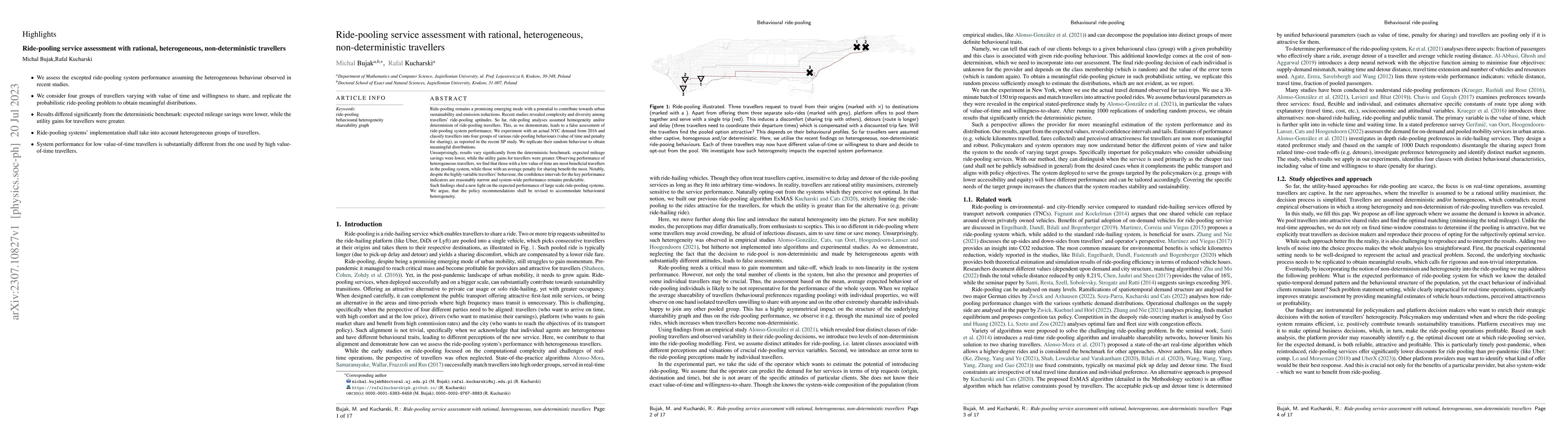 This study assesses the performance of ride-pooling services using heterogeneous, non-deterministic traveller behaviours, revealing significant deviations from deterministic models. Results show lower mileage savings but higher traveller utility, with low value of time travellers benefiting the most systemically.