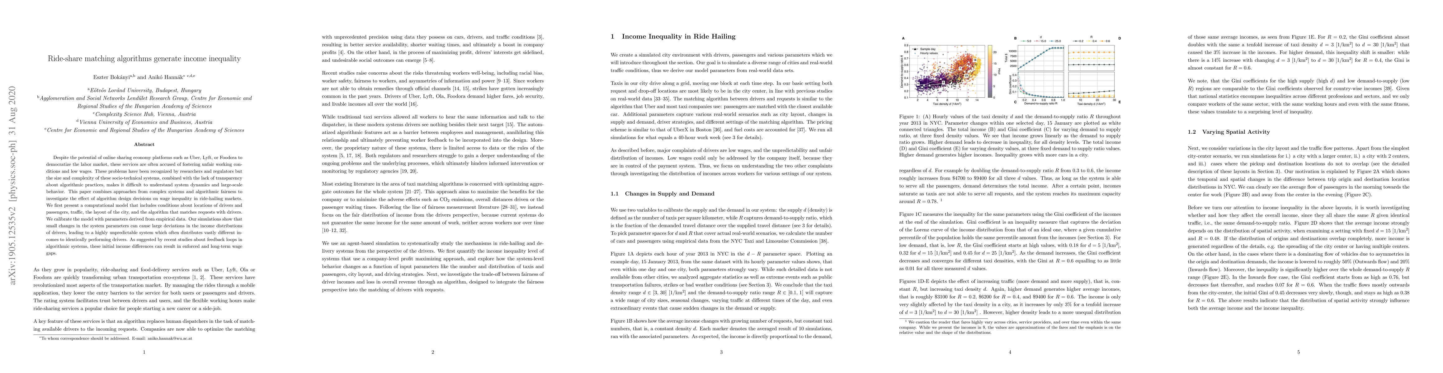 Despite the potential of online sharing economy platforms such as Uber, Lyft, or Foodora to democratize the labor market, these services are often accused of fostering unfair working conditions and low wages. These problems have been recognized by researchers and regulators but the size and complexity of these socio-technical systems, combined with the lack of transparency about algorithmic practices, makes it difficult to understand system dynamics and large-scale behavior. This paper combines approaches from complex systems and algorithmic fairness to investigate the effect of algorithm design decisions on wage inequality in ride-hailing markets. We first present a computational model that includes conditions about locations of drivers and passengers, traffic, the layout of the city, and the algorithm that matches requests with drivers. We calibrate the model with parameters derived from empirical data. Our simulations show that small changes in the system parameters can cause large deviations in the income distributions of drivers, leading to a highly unpredictable system which often distributes vastly different incomes to identically performing drivers. As suggested by recent studies about feedback loops in algorithmic systems, these initial income differences can result in enforced and long-term wage gaps.