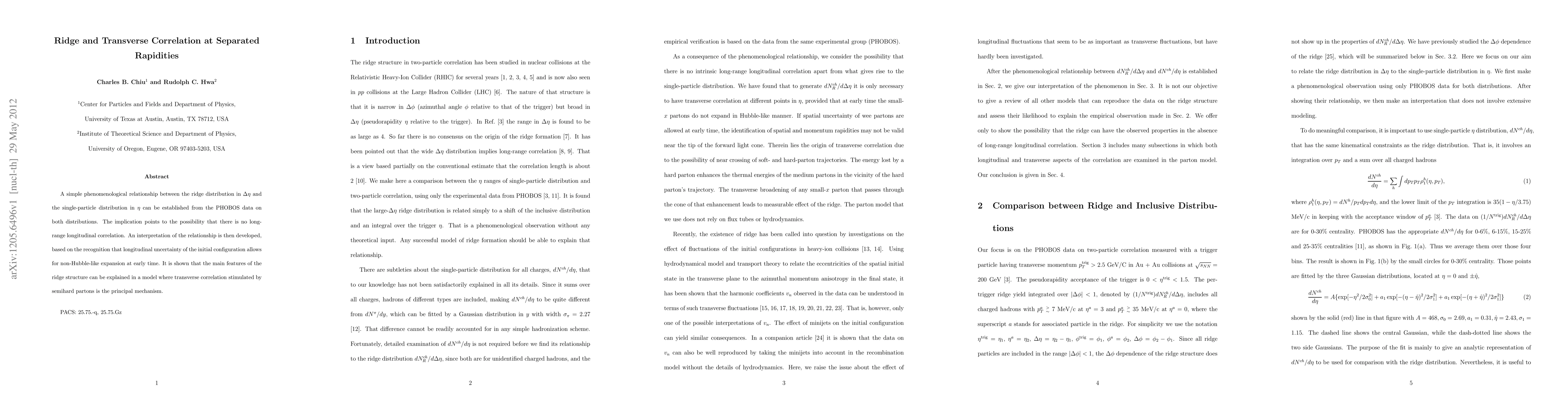 The PHOBOS data reveals a phenomenological link between ridge distribution in $\Delta\eta$ and single-particle distribution in $\eta$, suggesting no long-range longitudinal correlation. The ridge structure is primarily explained by transverse correlation stimulated by semihard partons, rather than Hubble-like expansion.