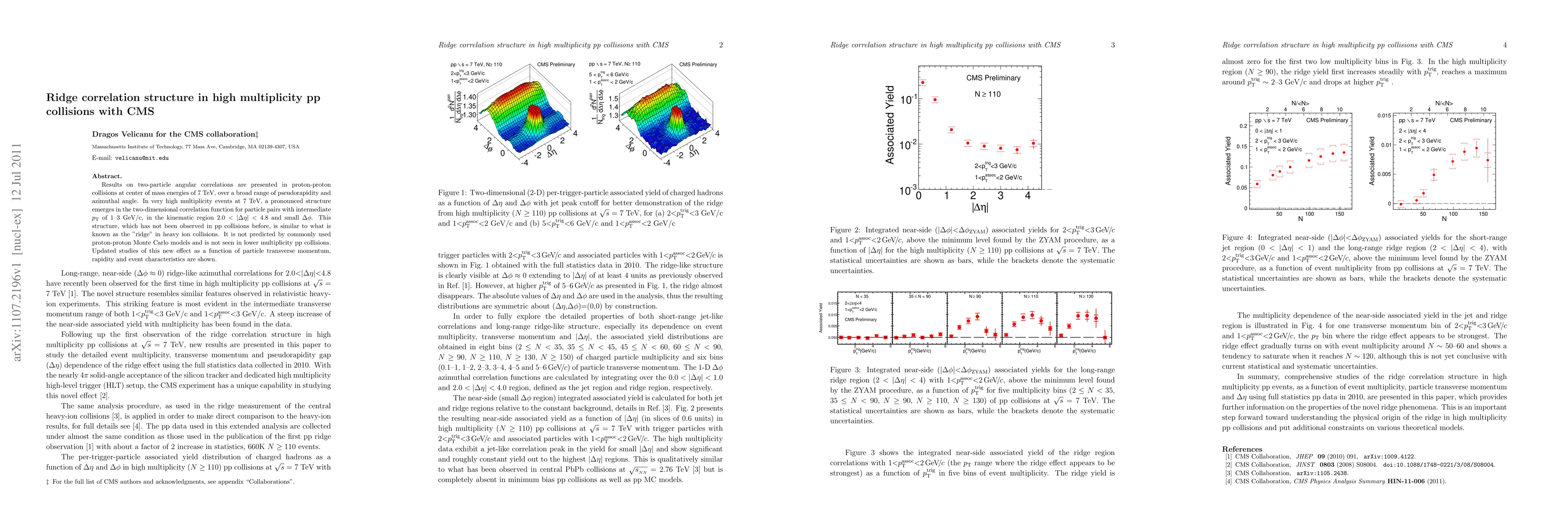 Results on two-particle angular correlations are presented in proton-proton collisions at center of mass energies of 7 TeV, over a broad range of pseudorapidity and azimuthal angle. In very high multiplicity events at 7 TeV, a pronounced structure emerges in the two-dimensional correlation function for particle pairs with intermediate $p_{\mathrm{T}}$ of 1--3 GeV/c, in the kinematic region $2.0 < |\Delta\eta| < 4.8$ and small $\Delta\phi$. This structure, which has not been observed in pp collisions before, is similar to what is known as the "ridge" in heavy ion collisions. It is not predicted by commonly used proton-proton Monte Carlo models and is not seen in lower multiplicity pp collisions. Updated studies of this new effect as a function of particle transverse momentum, rapidity and event characteristics are shown.