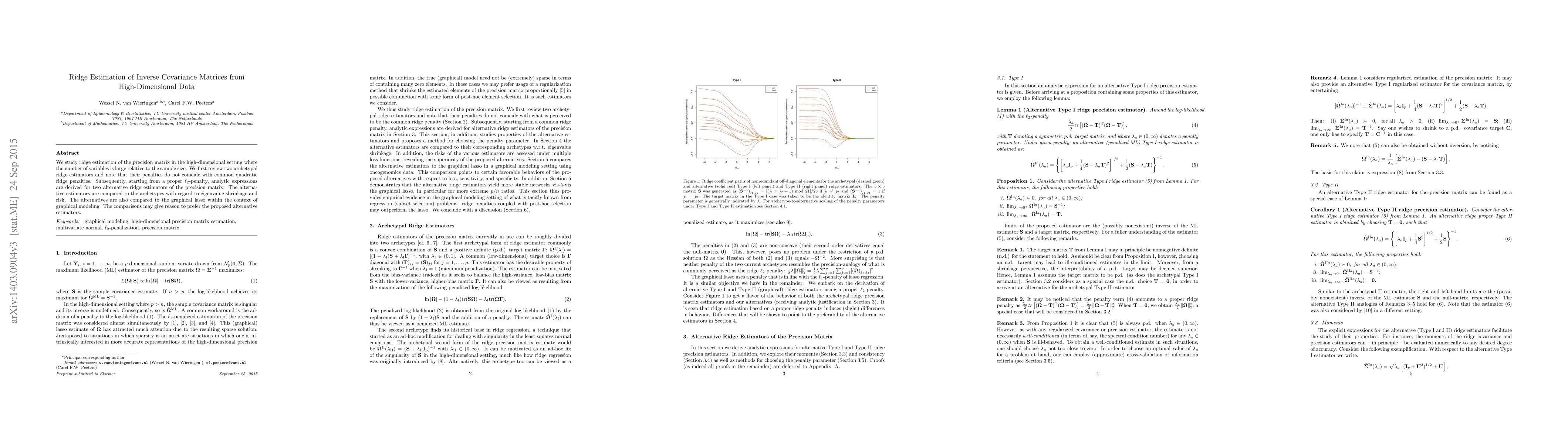 This paper investigates ridge estimation techniques for precision matrices in high-dimensional settings, proposing two alternative ridge estimators derived from a common penalty. The study compares these new estimators to existing methods and the graphical lasso, suggesting they may offer better performance in terms of eigenvalue shrinkage and risk.
