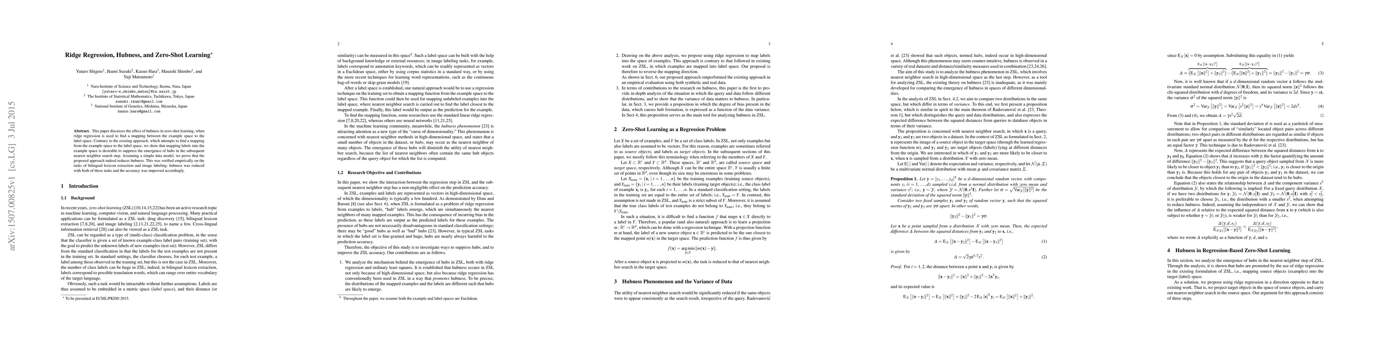This paper proposes mapping labels into the example space using ridge regression to reduce hubness in zero-shot learning, demonstrating reduced hubness and improved accuracy in bilingual lexicon extraction and image labeling tasks.