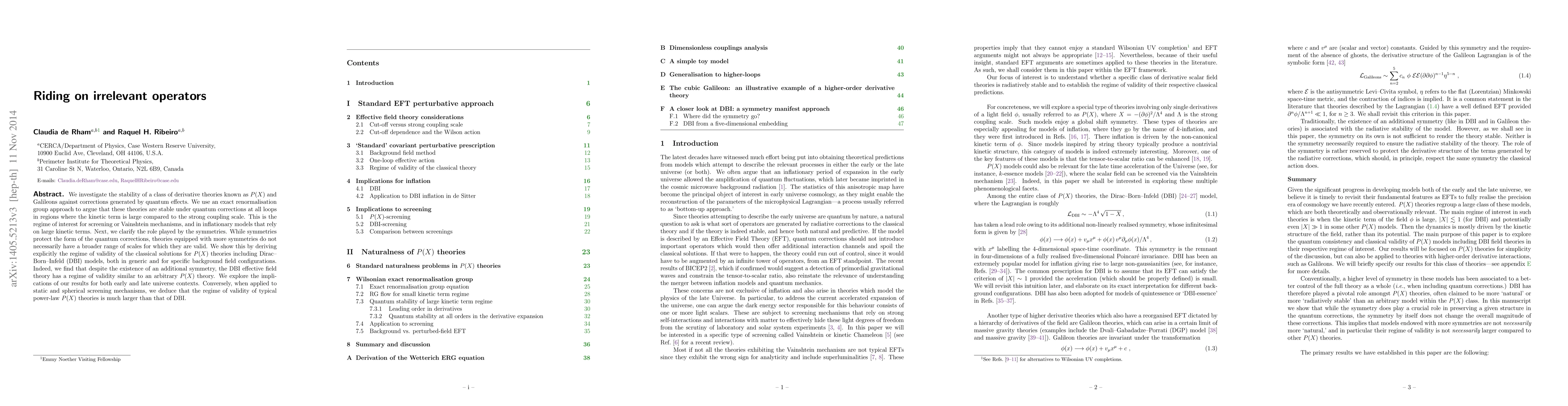 We investigate the stability of a class of derivative theories known as $P(X)$ and Galileons against corrections generated by quantum effects. We use an exact renormalisation group approach to argue that these theories are stable under quantum corrections at all loops in regions where the kinetic term is large compared to the strong coupling scale. This is the regime of interest for screening or Vainshtein mechanisms, and in inflationary models that rely on large kinetic terms. Next, we clarify the role played by the symmetries. While symmetries protect the form of the quantum corrections, theories equipped with more symmetries do not necessarily have a broader range of scales for which they are valid. We show this by deriving explicitly the regime of validity of the classical solutions for $P(X)$ theories including Dirac-Born-Infeld (DBI) models, both in generic and for specific background field configurations. Indeed, we find that despite the existence of an additional symmetry, the DBI effective field theory has a regime of validity similar to an arbitrary $P(X)$ theory. We explore the implications of our results for both early and late universe contexts. Conversely, when applied to static and spherical screening mechanisms, we deduce that the regime of validity of typical power-law $P(X)$ theories is much larger than that of DBI.