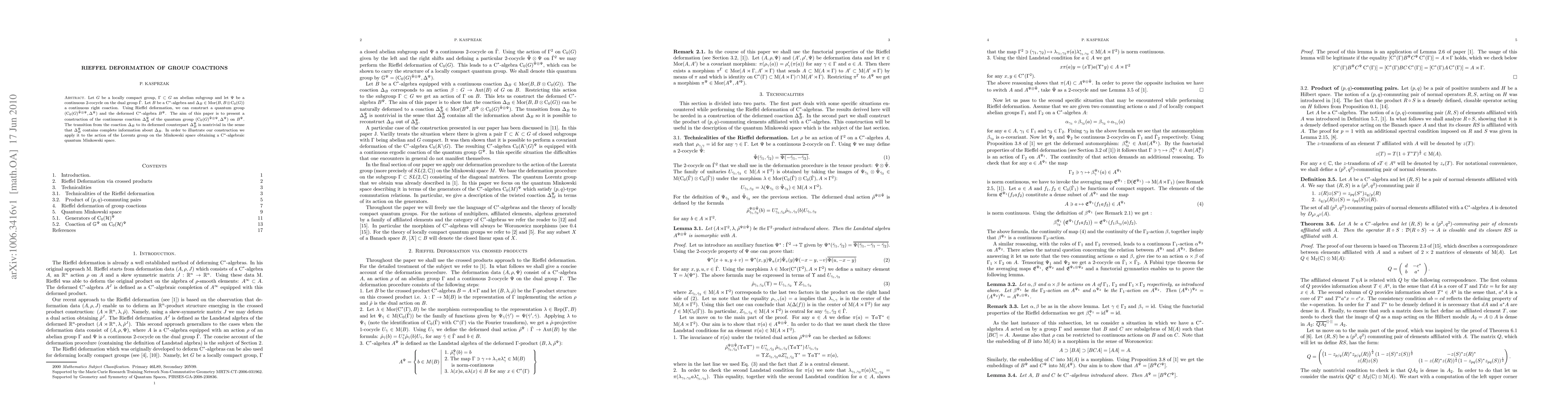 The work is novel in its application of Rieffel deformation to group coactions, offering a systematic way to construct deformed algebras that retain crucial coaction data, which is not addressed in existing literature on deformation theory.