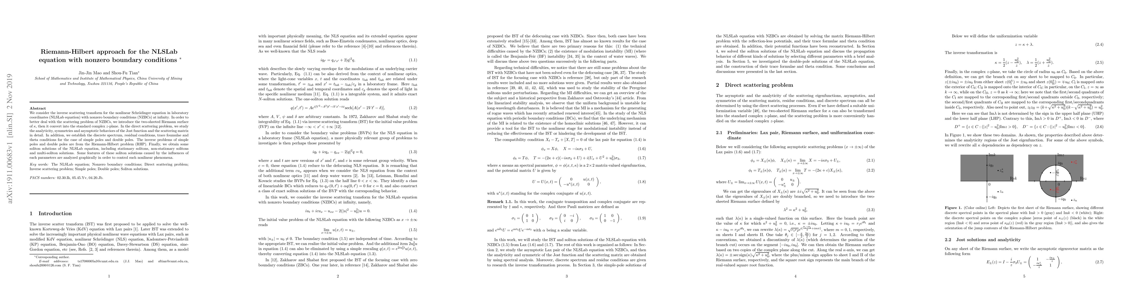 The paper introduces a detailed Riemann-Hilbert approach for the NLSLab equation with NZBCs, providing a systematic method for solving the inverse scattering problem and deriving soliton solutions.
