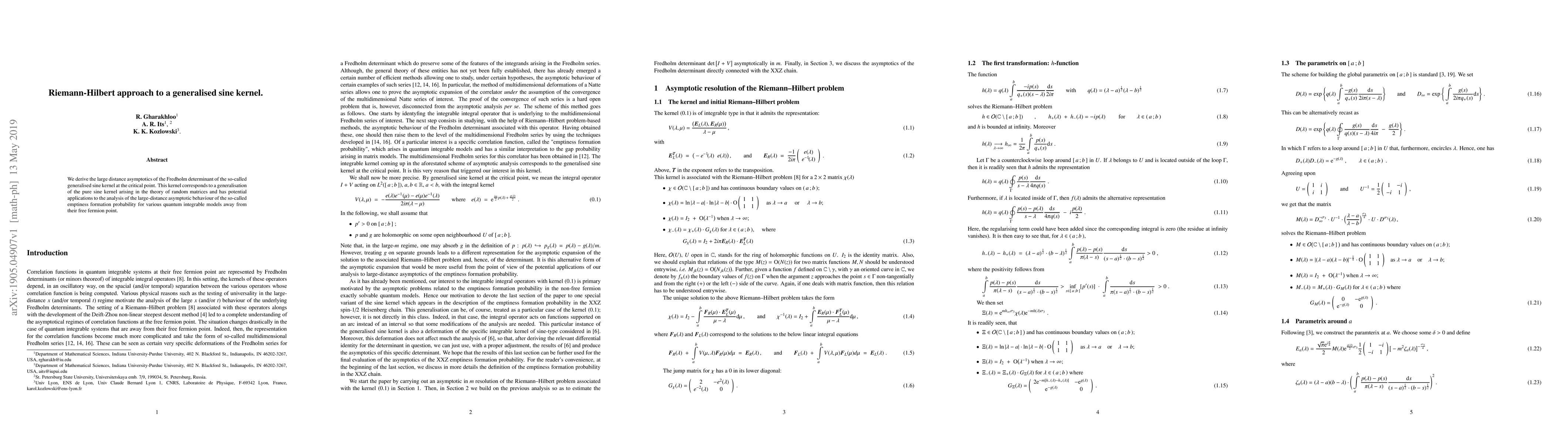 This paper derives the large distance asymptotics of the Fredholm determinant for a generalised sine kernel, which extends the pure sine kernel used in random matrix theory, and explores its implications for understanding the emptiness formation probability in quantum integrable models.