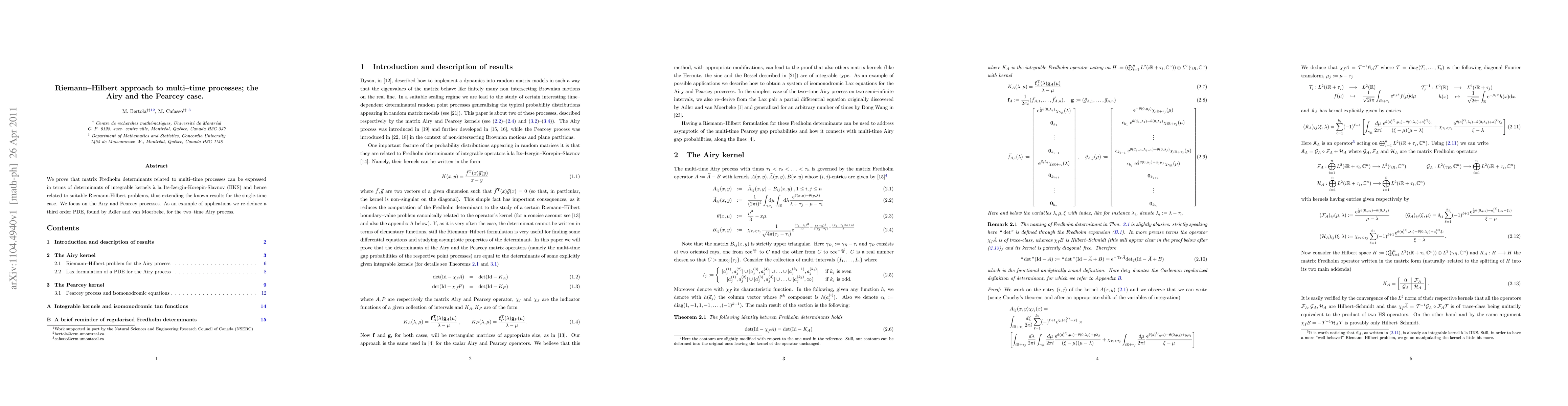 We prove that matrix Fredholm determinants related to multi-time processes can be expressed in terms of determinants of integrable kernels \`a la Its-Izergin-Korepin-Slavnov (IIKS) and hence related to suitable Riemann-Hilbert problems, thus extending the known results for the single-time case. We focus on the Airy and Pearcey processes. As an example of applications we re-deduce a third order PDE, found by Adler and van Moerbeke, for the two-time Airy process.